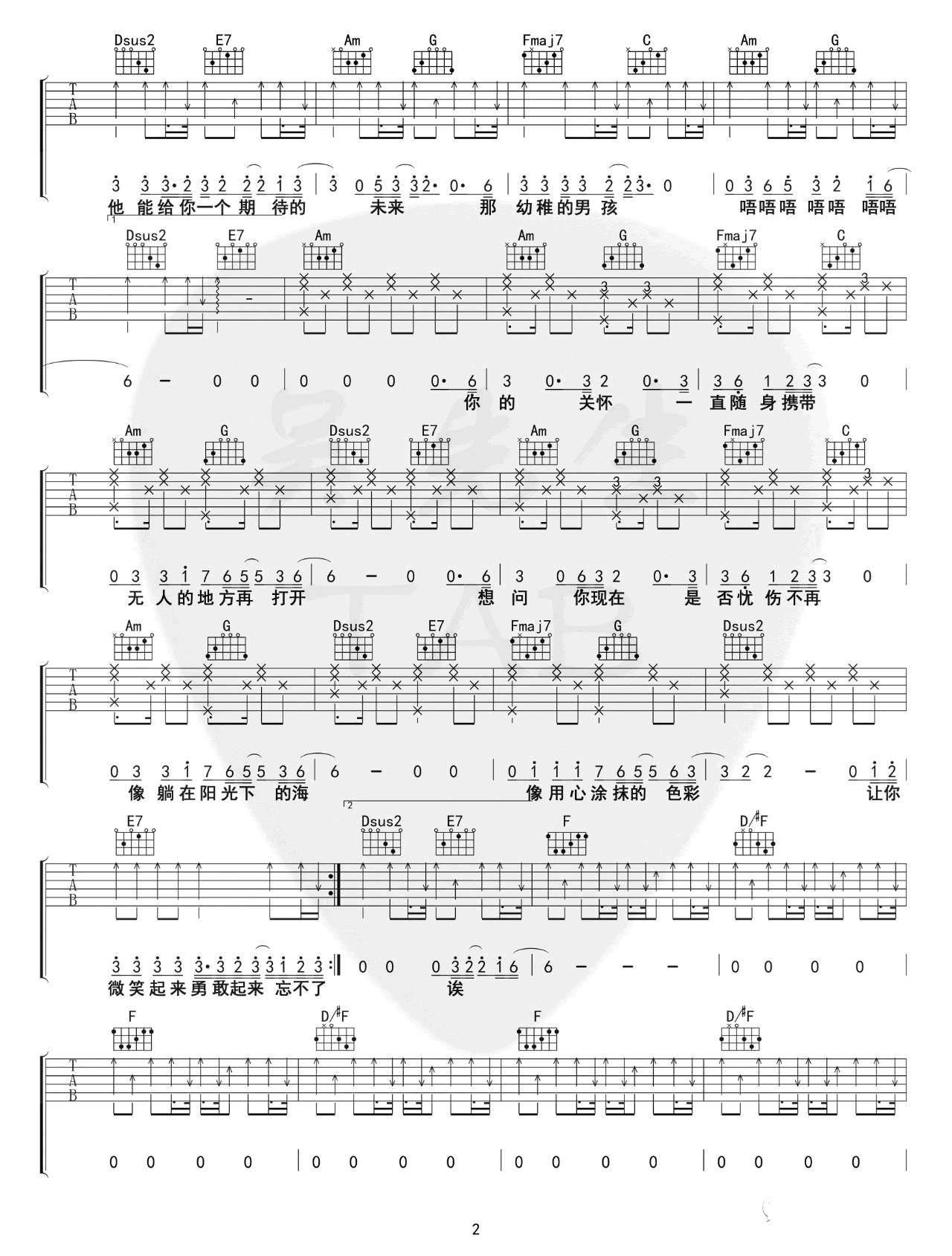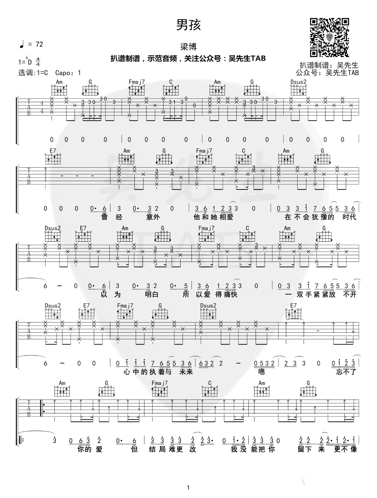 - 男孩吉他谱_梁博_C调指法_男孩六线谱