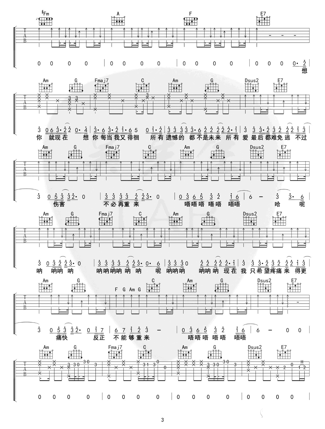 - 不是因为寂寞才想你吉他谱_TRY/王小帅_弹唱六线谱