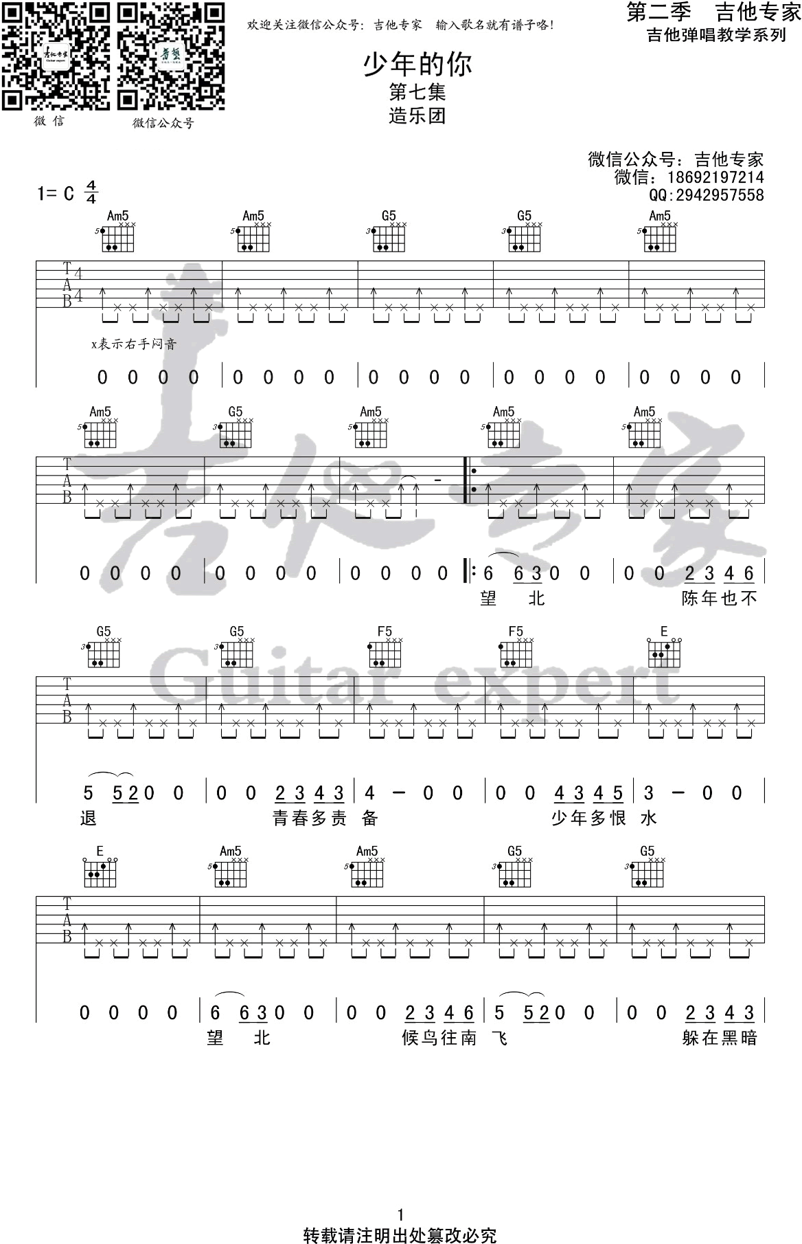 - 少年的你吉他谱_造乐团_C调_易烊千玺《少年的你》插曲饭制版