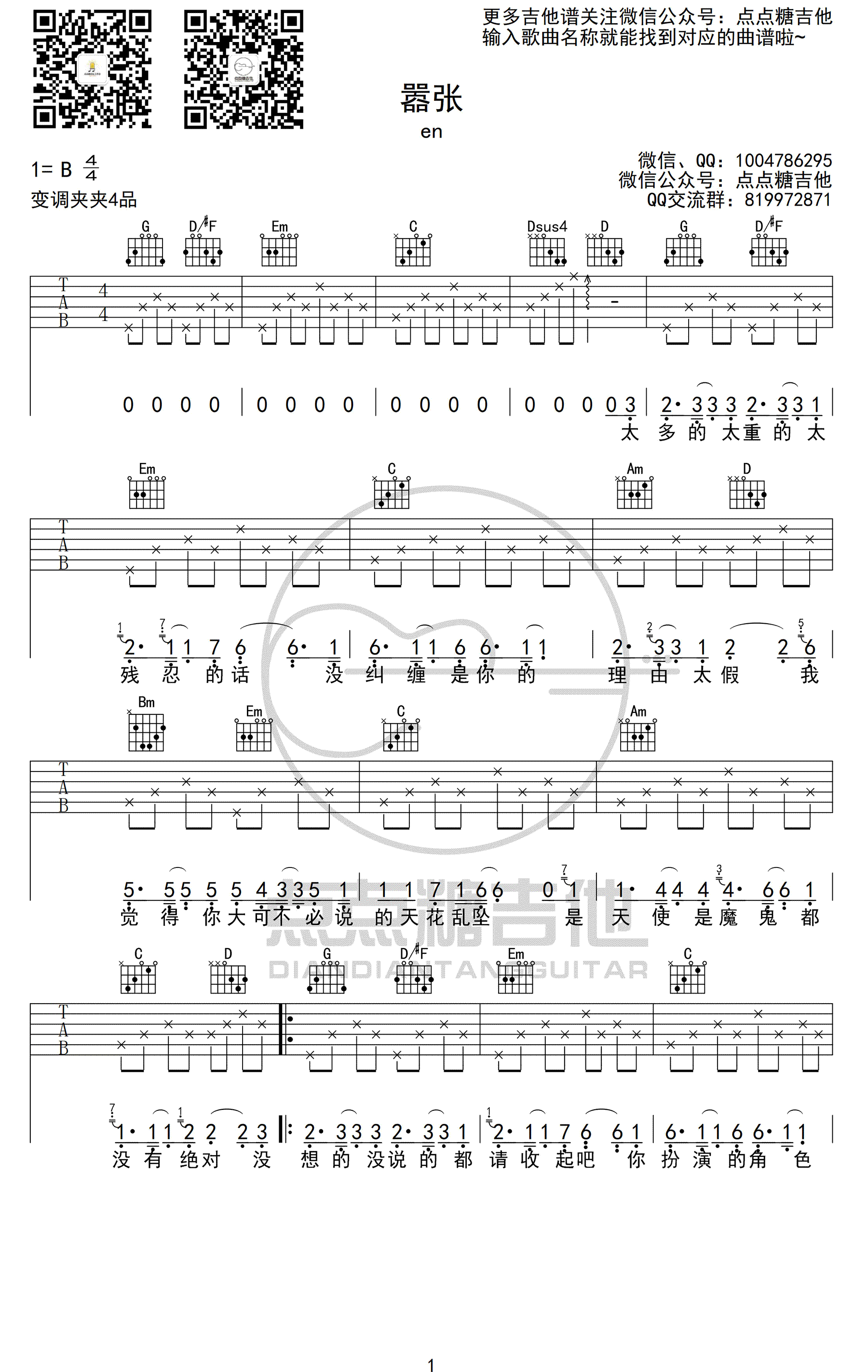 - 嚣张吉他谱_EN_G调弹唱谱_高清图片谱