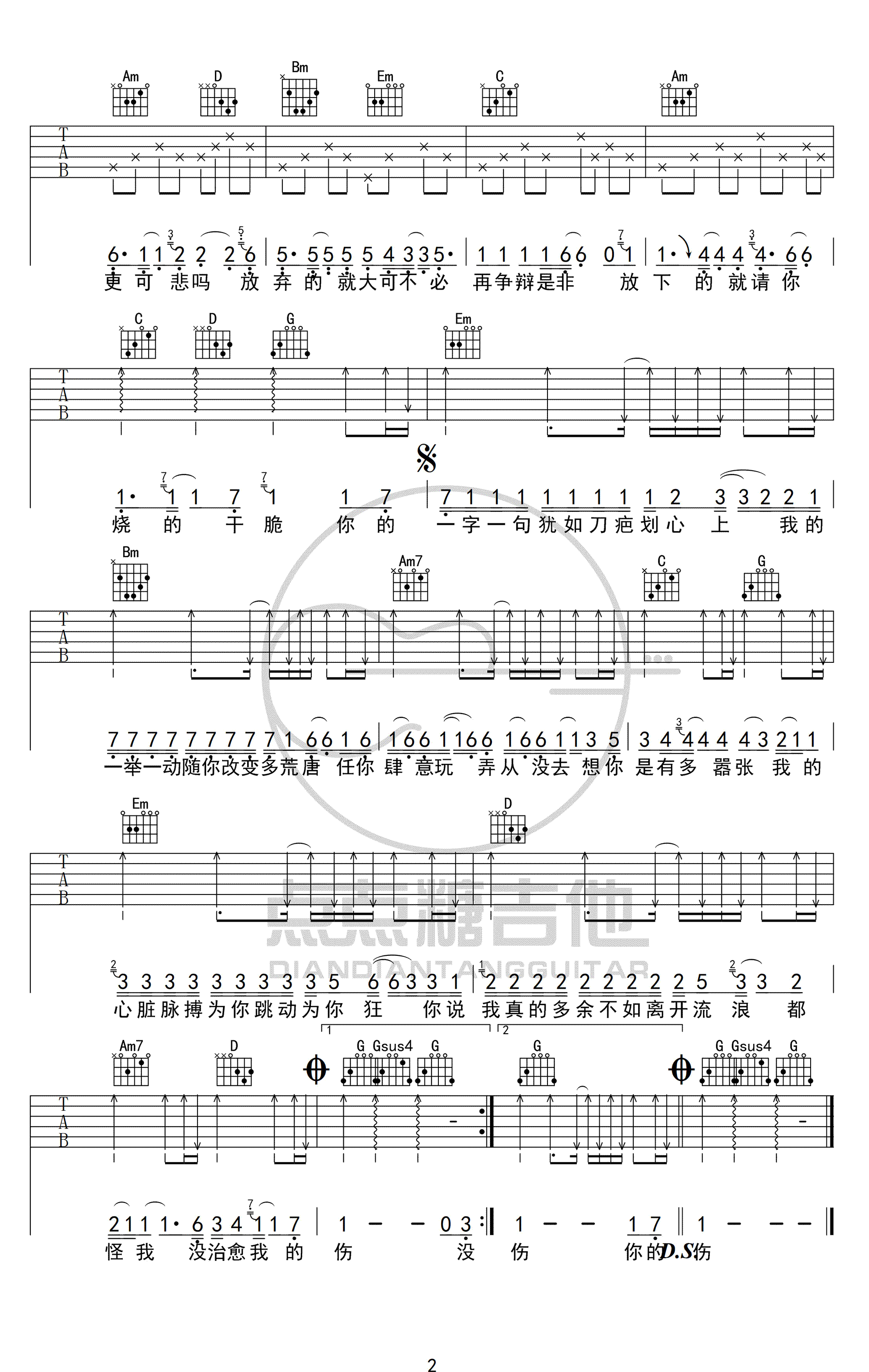 - 迷人的危险吉他谱_尚士达_弹唱六线谱_图片谱