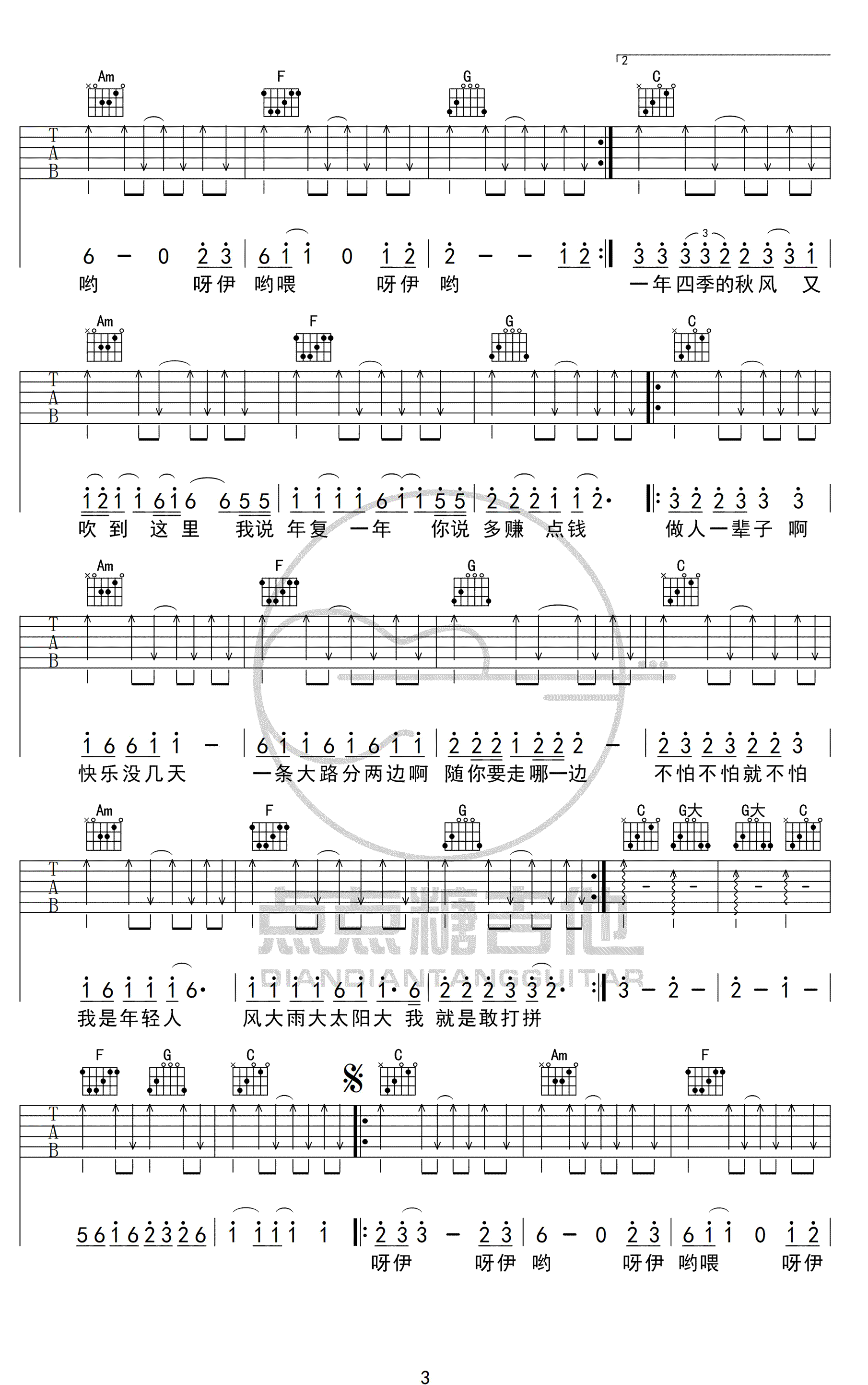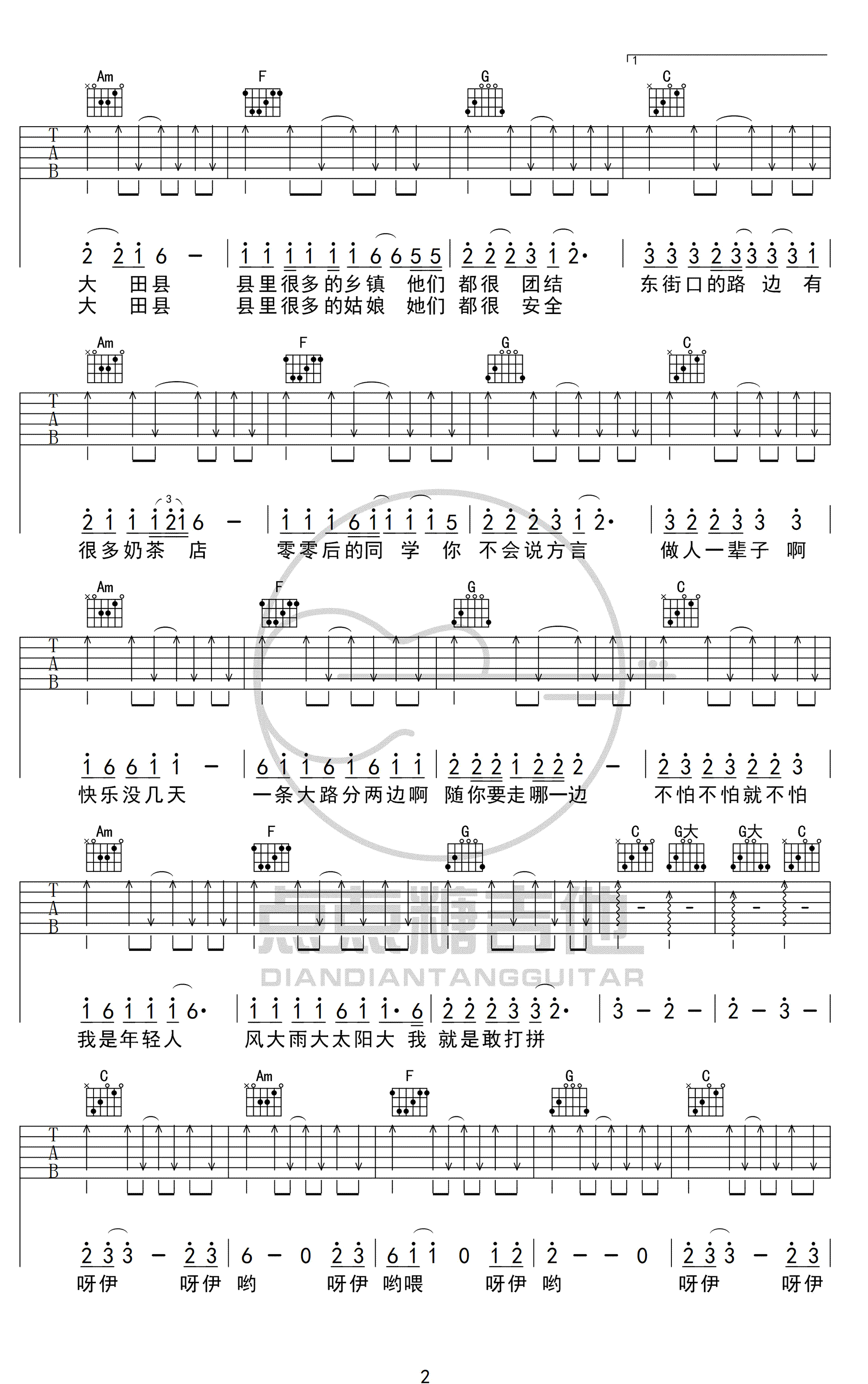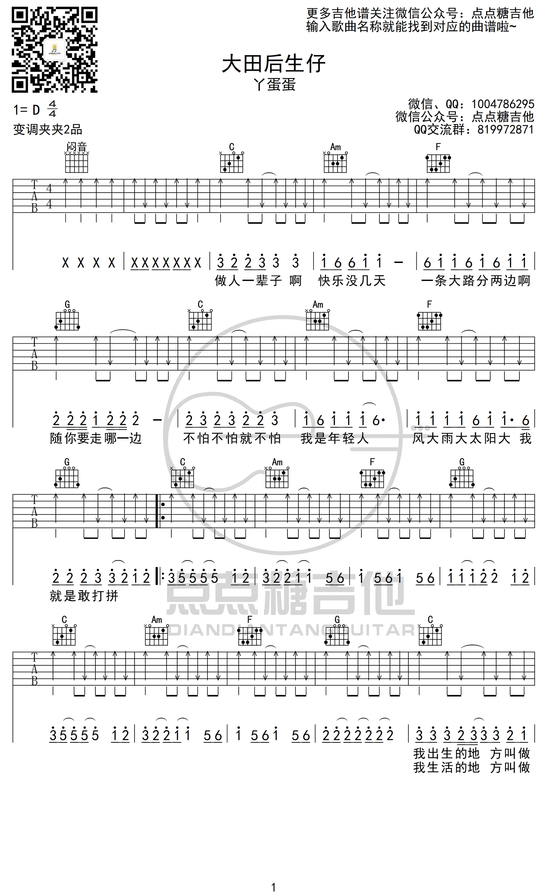 - 大田后生仔吉他谱_丫蛋蛋_C调弹唱谱_完整图片谱
