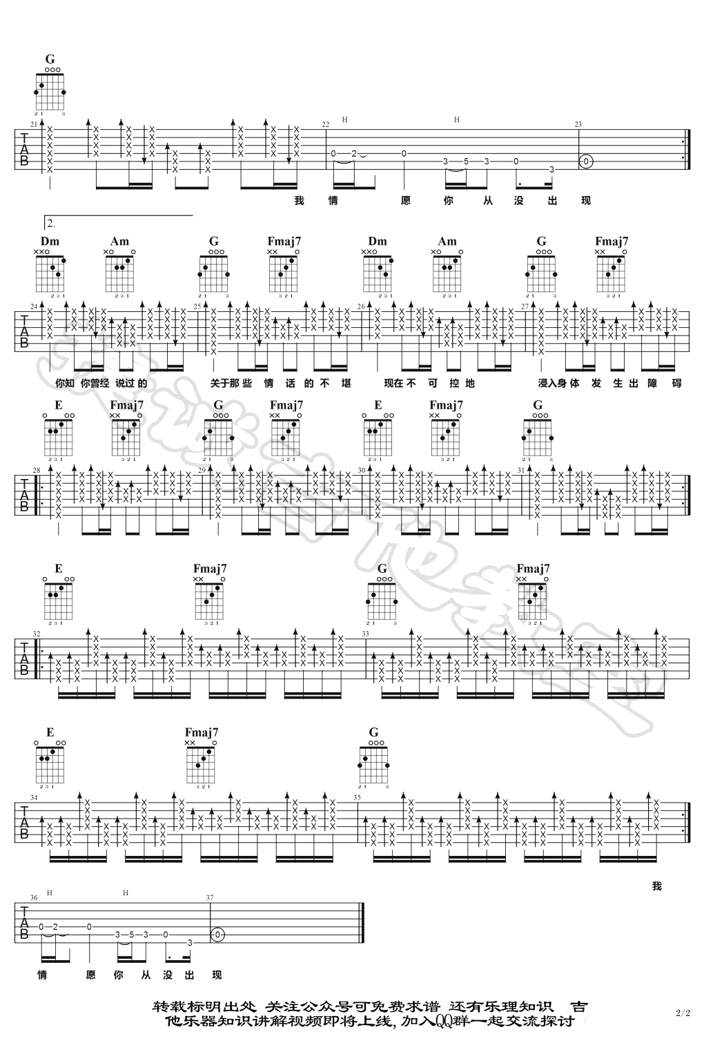 - 暗示分离吉他谱_EN_G调指法_弹唱六线谱