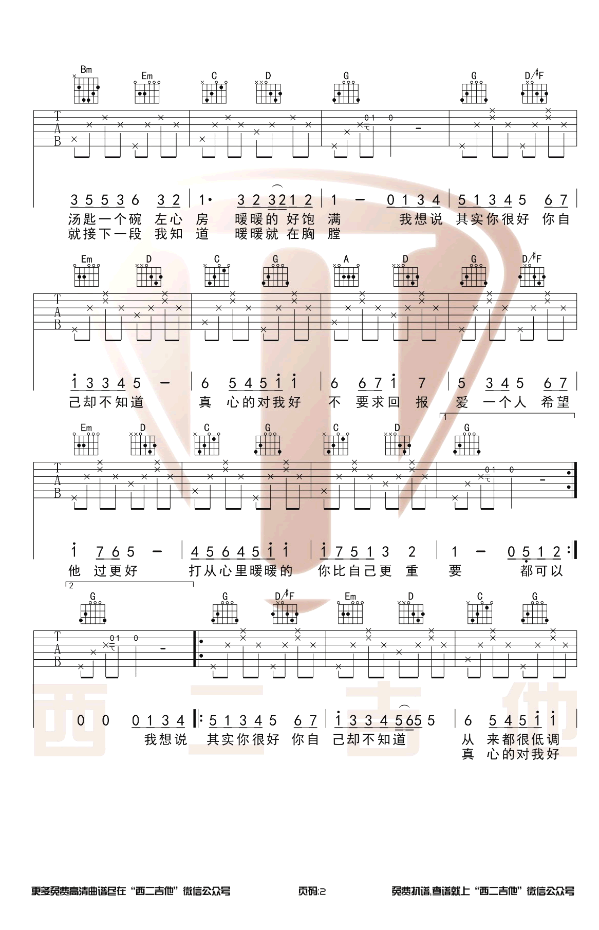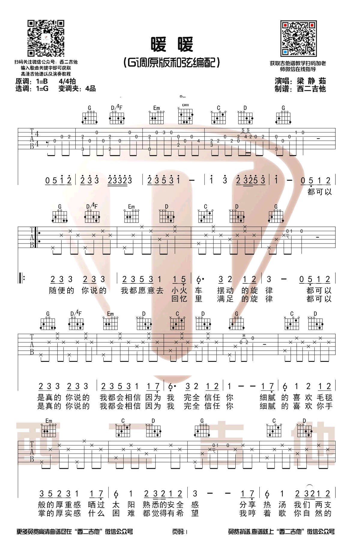 - 暖暖吉他谱_梁静茹_G调原版_吉他弹唱演示视频