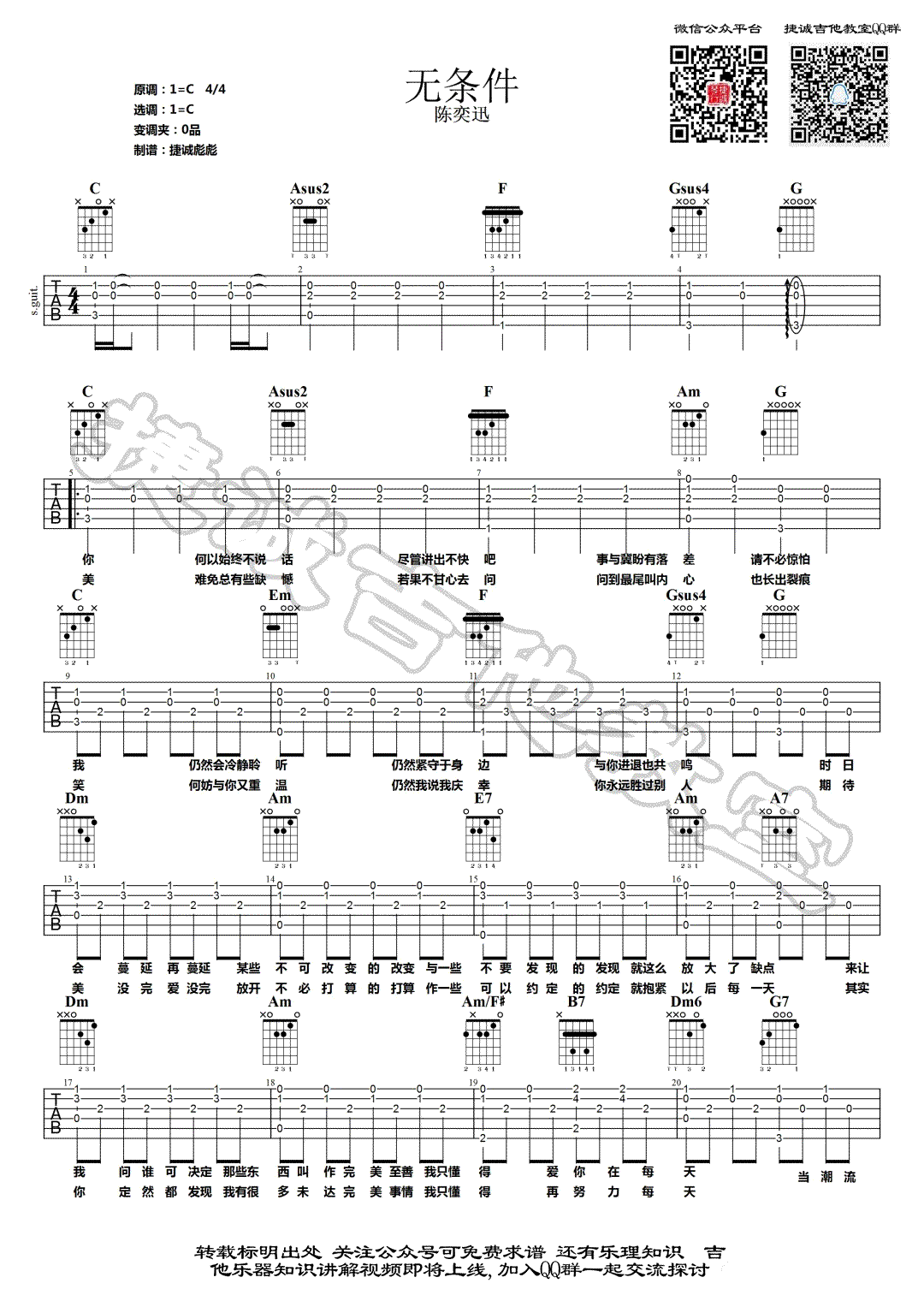 - 无条件吉他谱_陈奕迅_C调弹唱谱_吉他教学视频