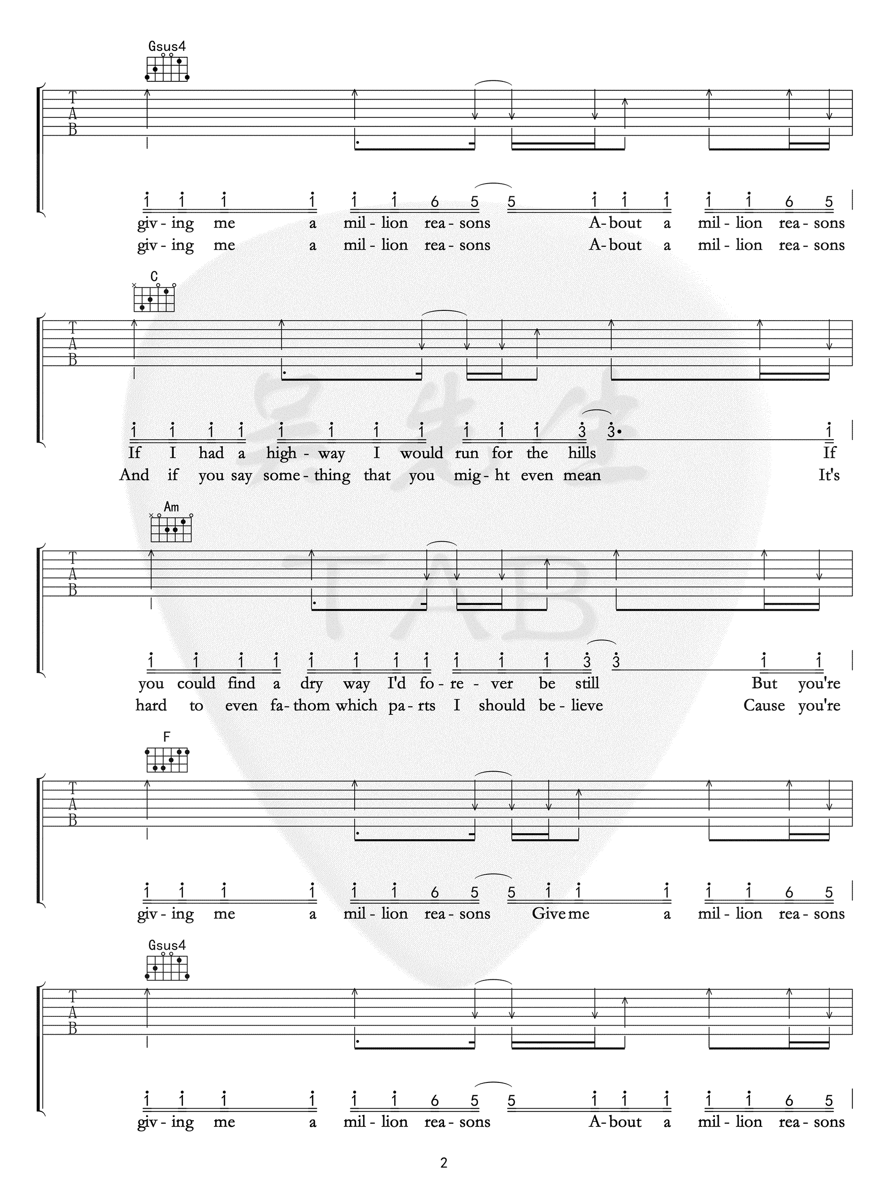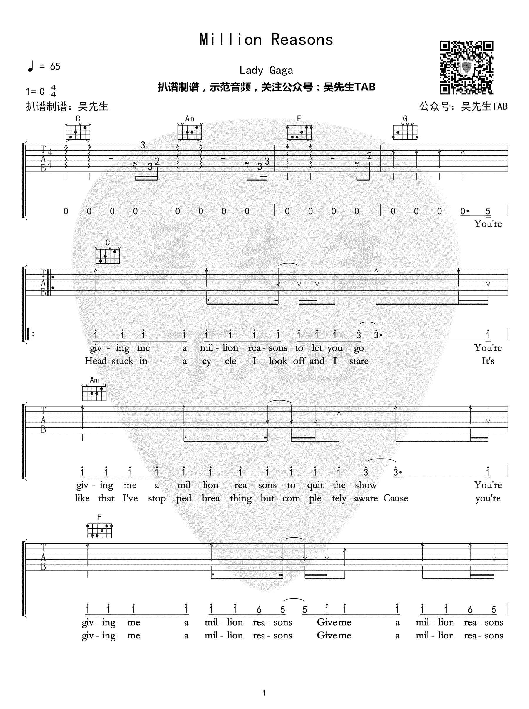 - Million Reasons吉他谱_lady Gaga_C调弹唱谱_简单版
