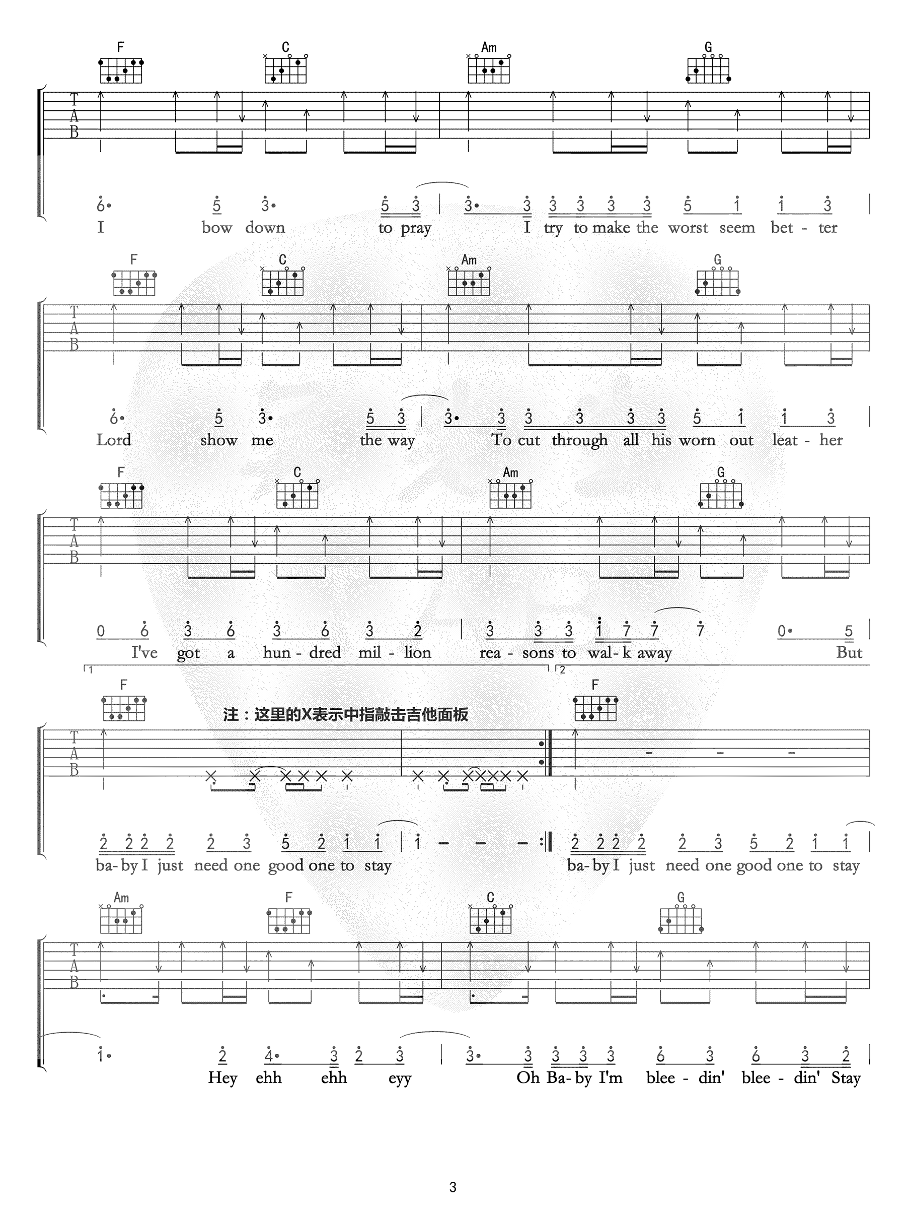 - 暗示分离吉他谱_EN_G调指法_弹唱六线谱