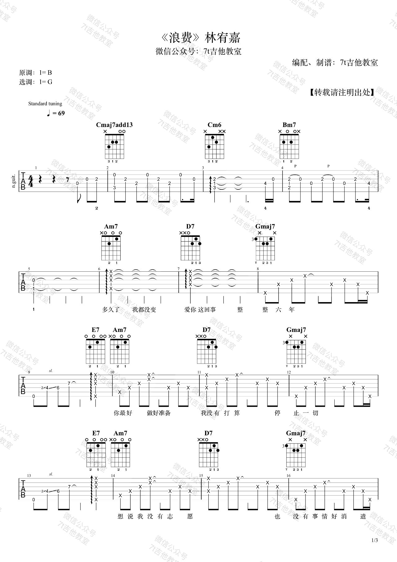 - 浪费吉他谱_林宥嘉_G调指法_吉他弹唱演示视频