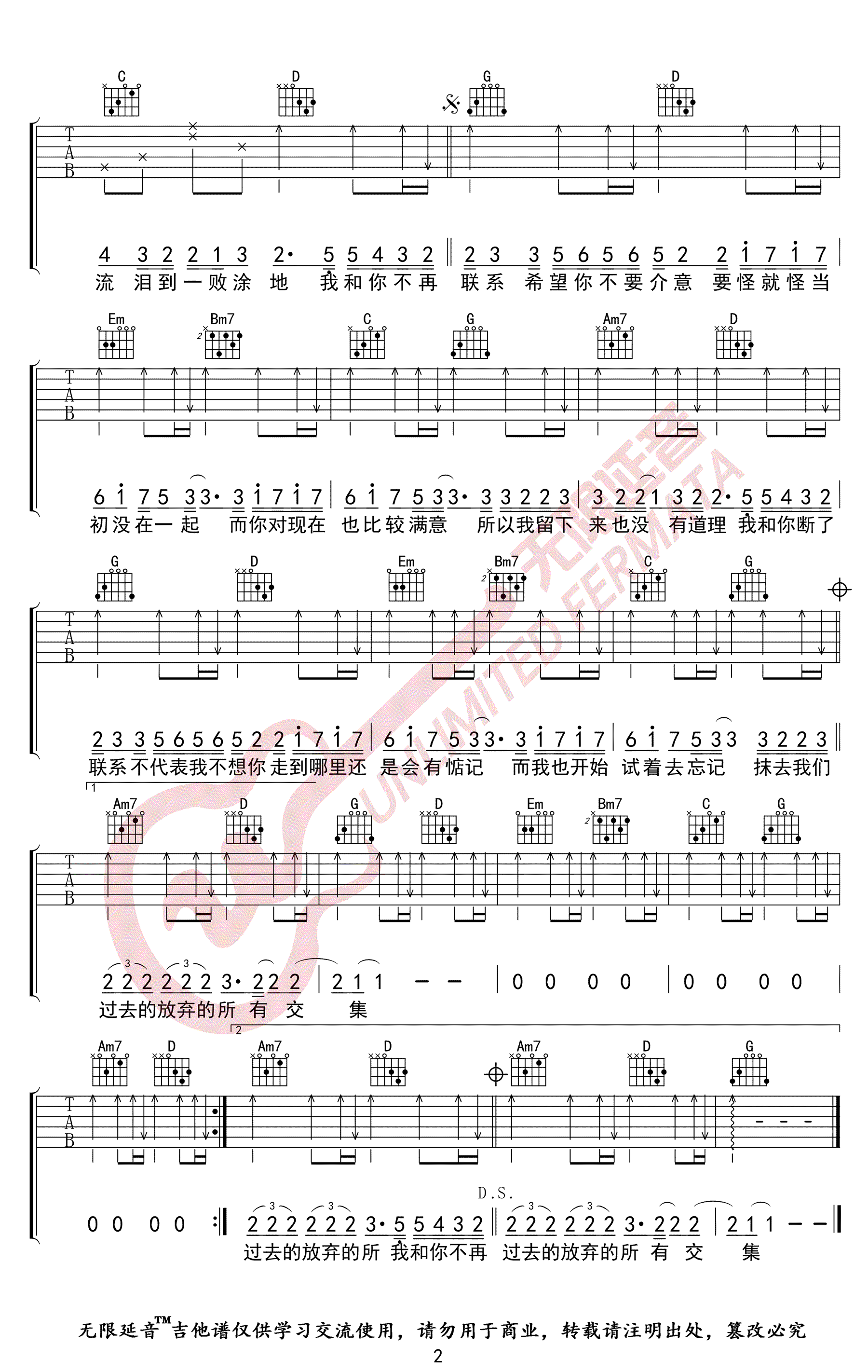 - 不再联系吉他谱_夏天Alex_G调弹唱谱_高清版