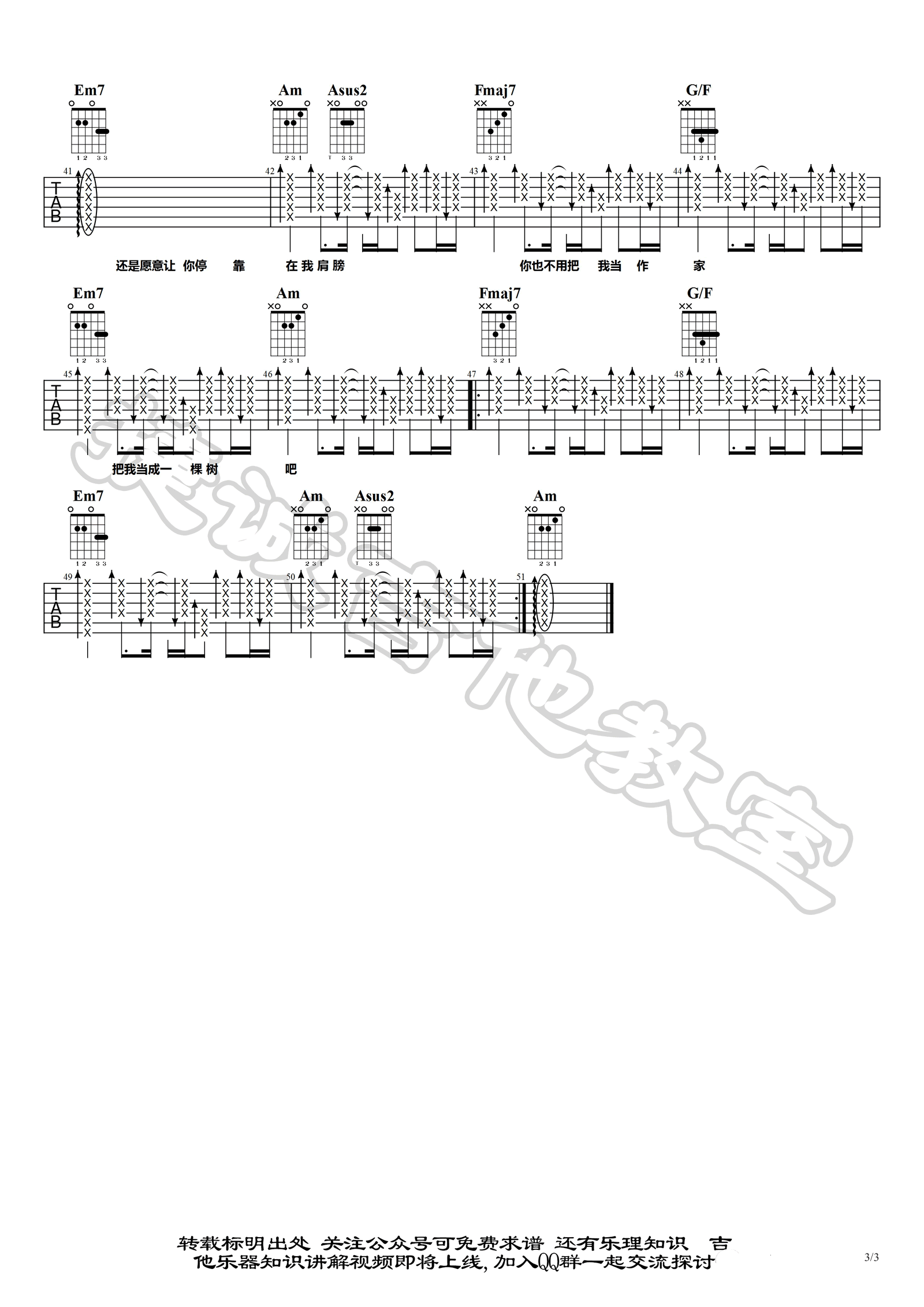 - 不是因为寂寞才想你吉他谱_TRY/王小帅_弹唱六线谱