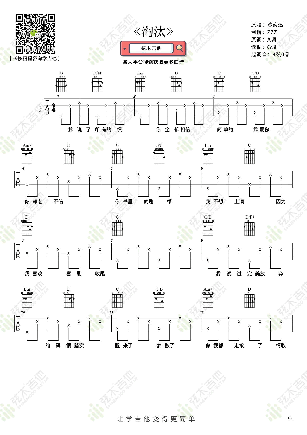 - 陈奕迅《淘汰》吉他谱_G调_弹唱图片谱