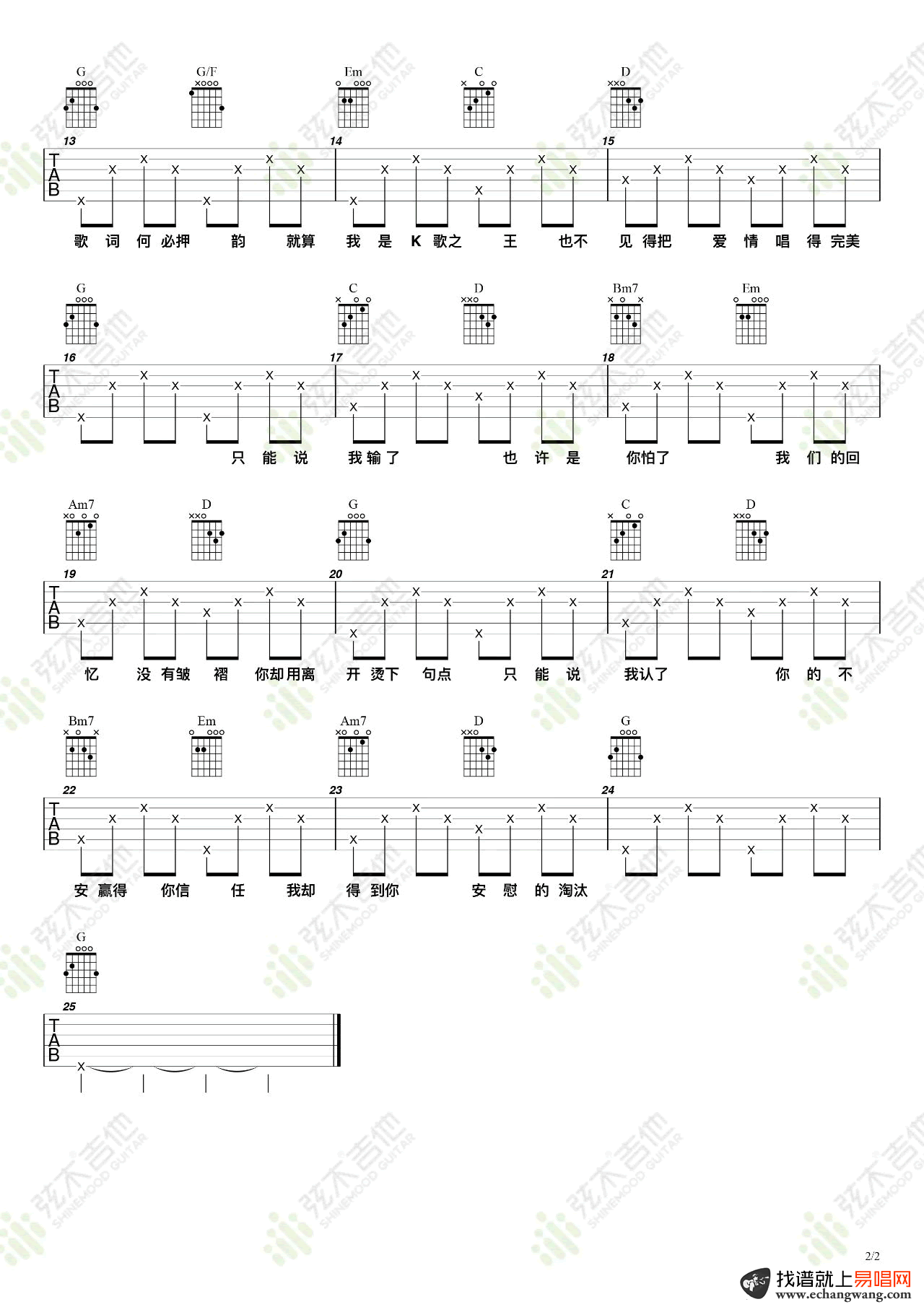- 淘汰吉他谱_陈奕迅_G调六线谱_高清图片谱