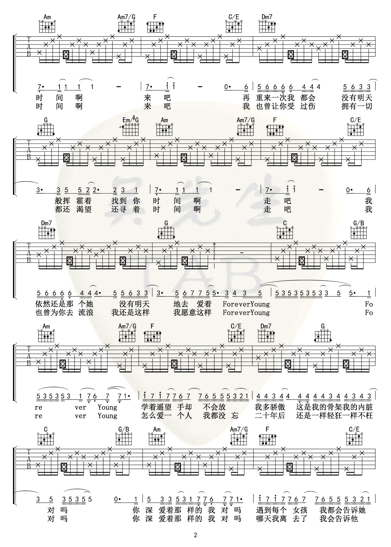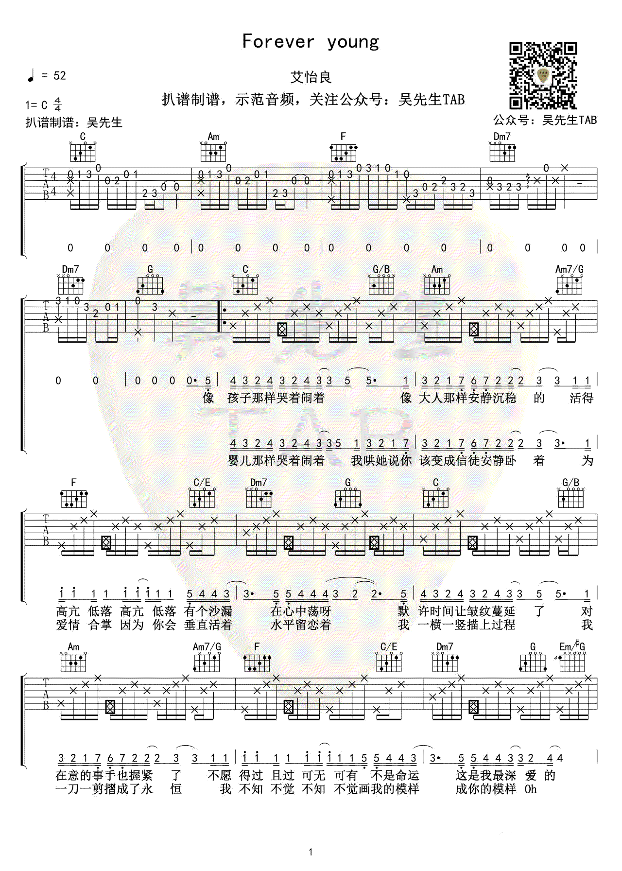 - Forever young吉他谱_艾怡良_C调_弹唱六线谱