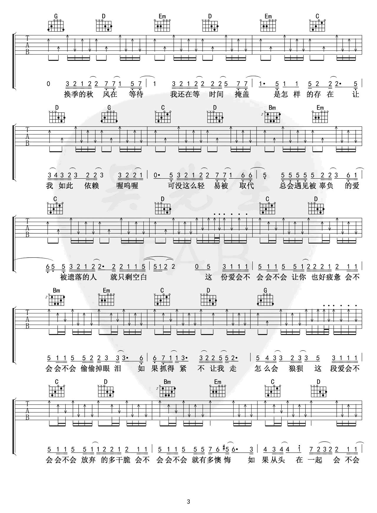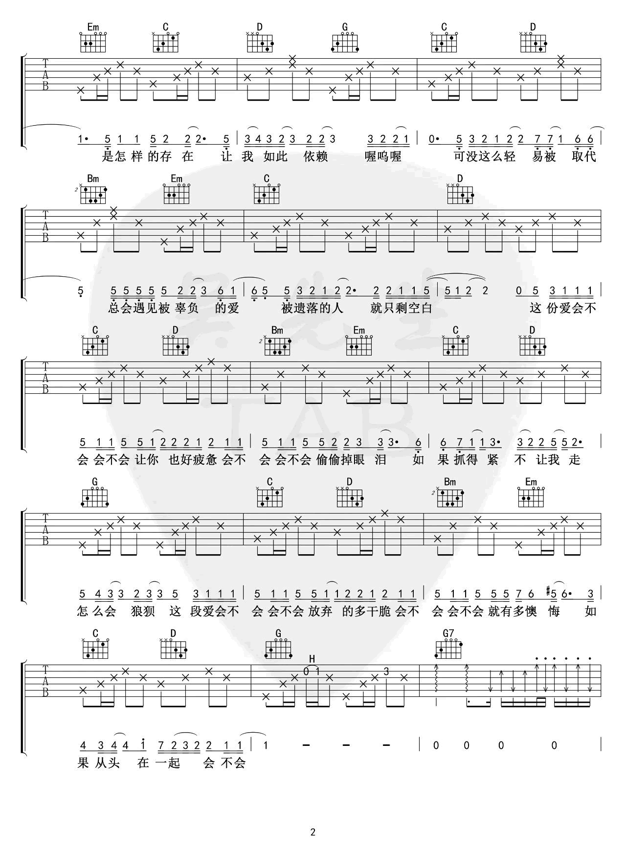 - 刘大壮《会不会》吉他谱_G调_带前奏六线谱