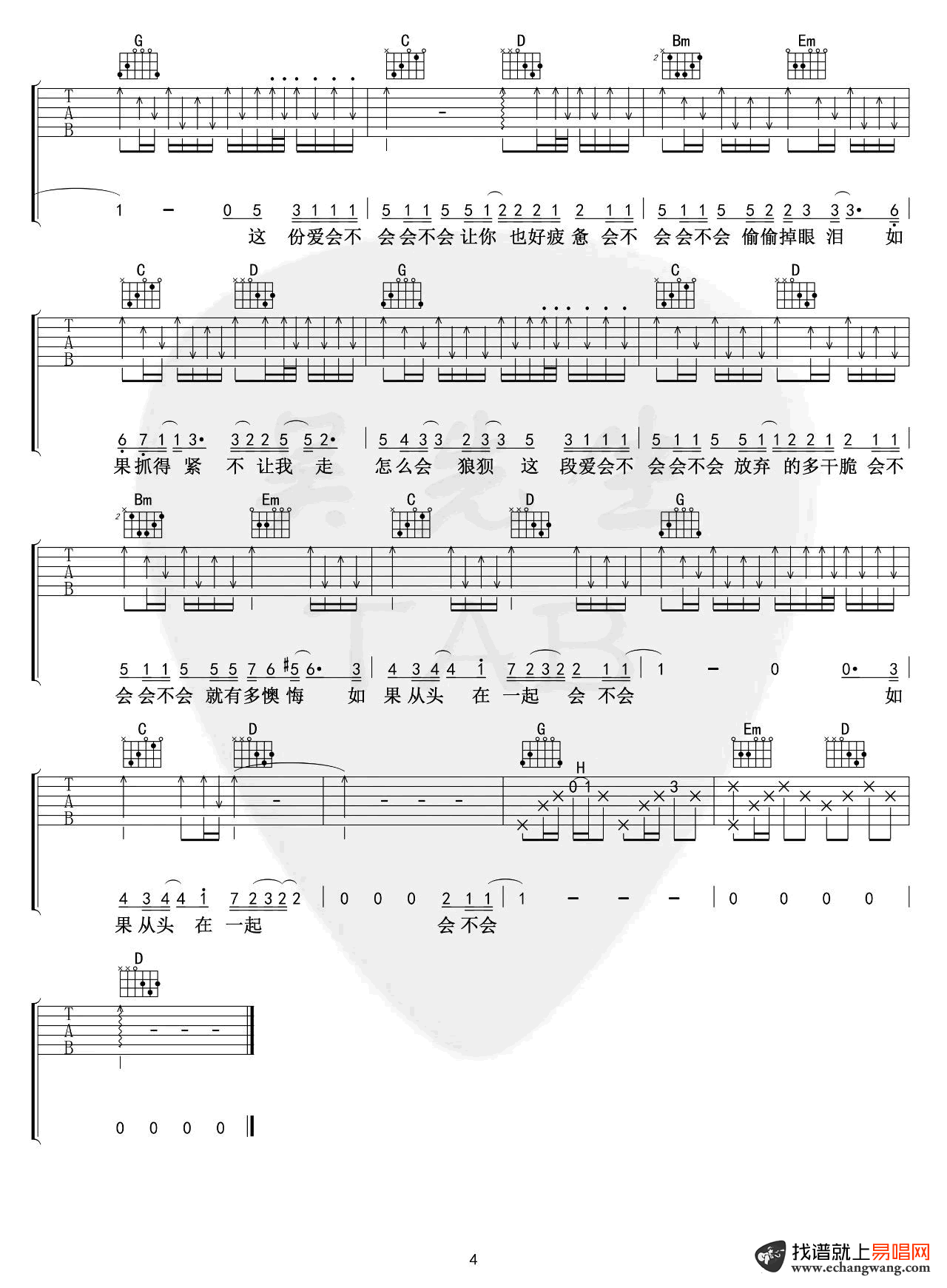- 会不会(吉他版)吉他谱_刘大壮_G调指法_弹唱谱