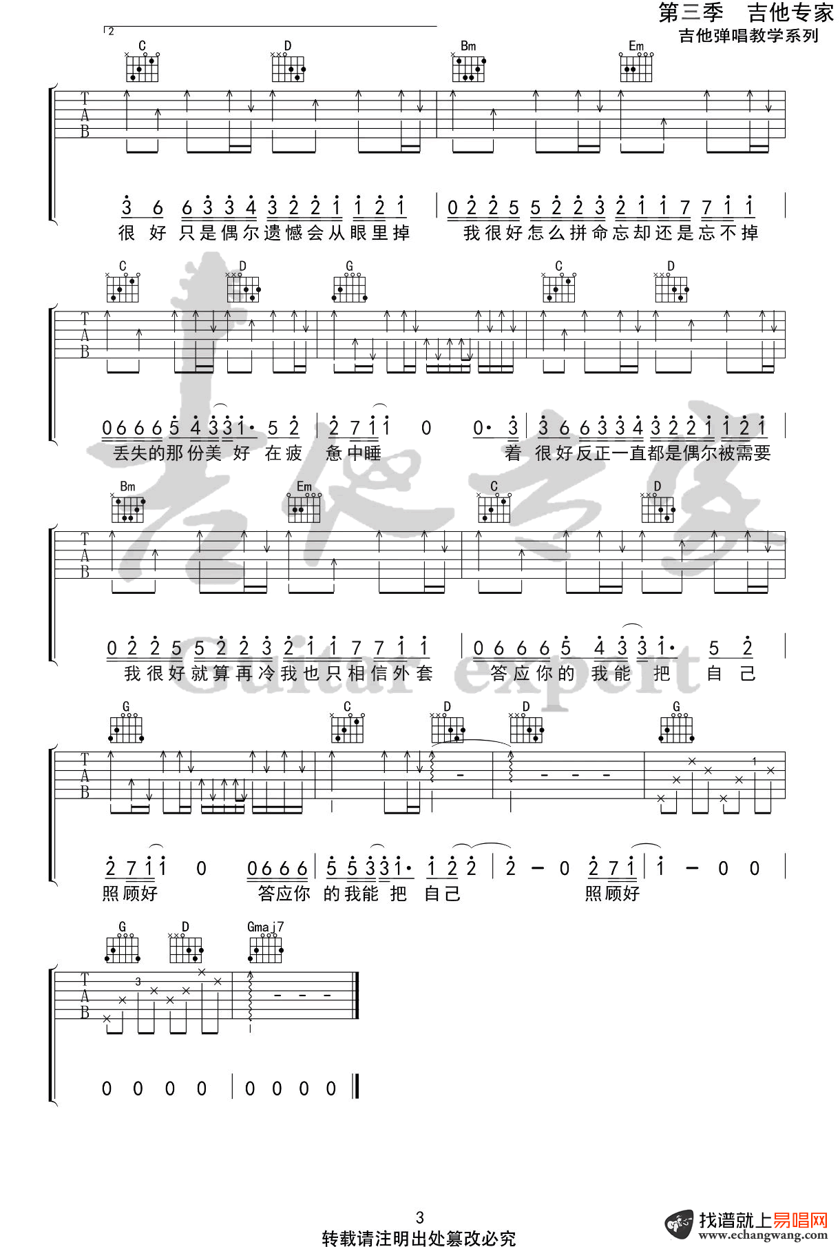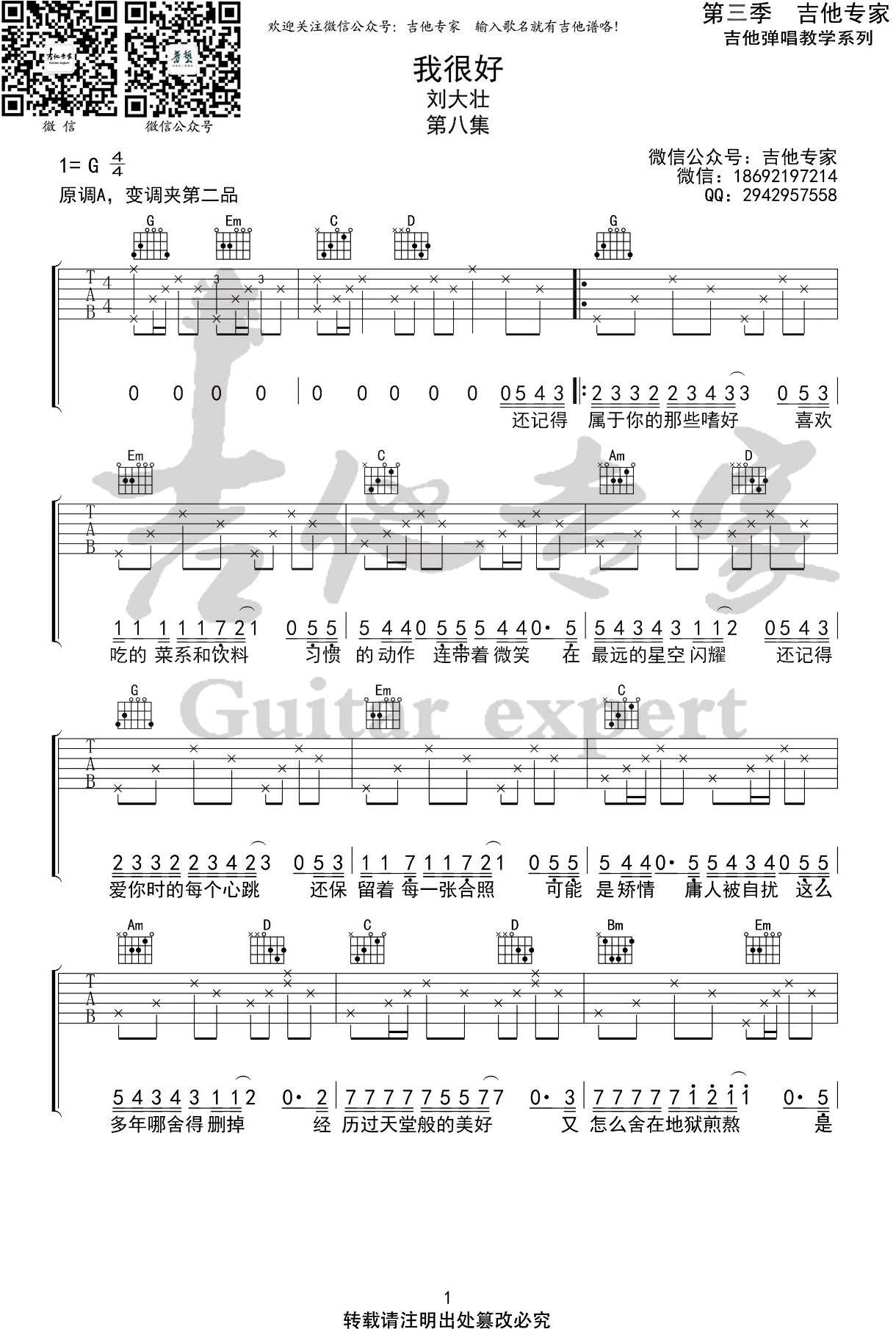 - 我很好吉他谱_刘大壮《我很好》吉他版_G调弹唱谱