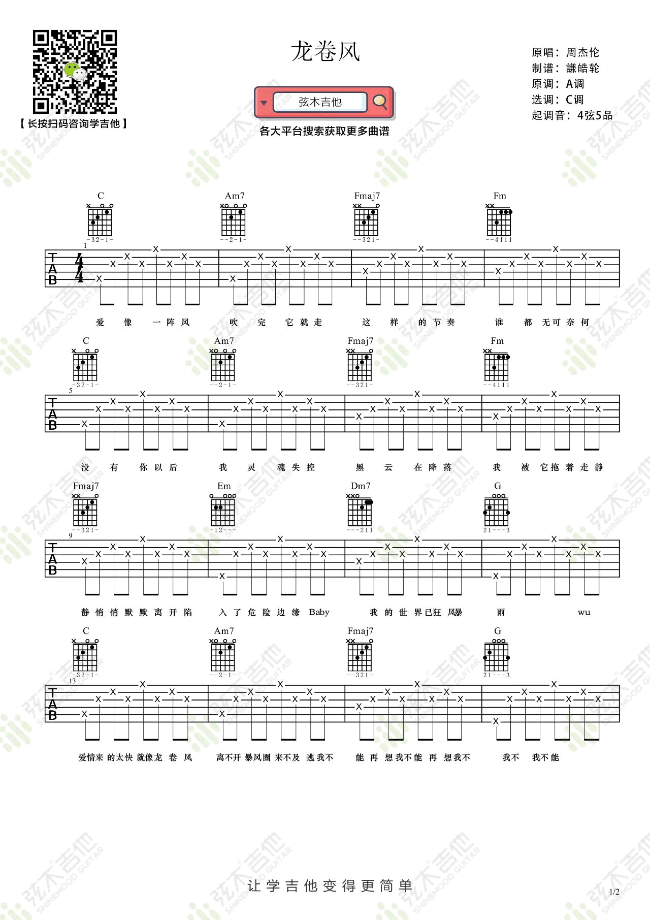 - 龙卷风吉他谱_周杰伦_C调弹唱谱_简单版
