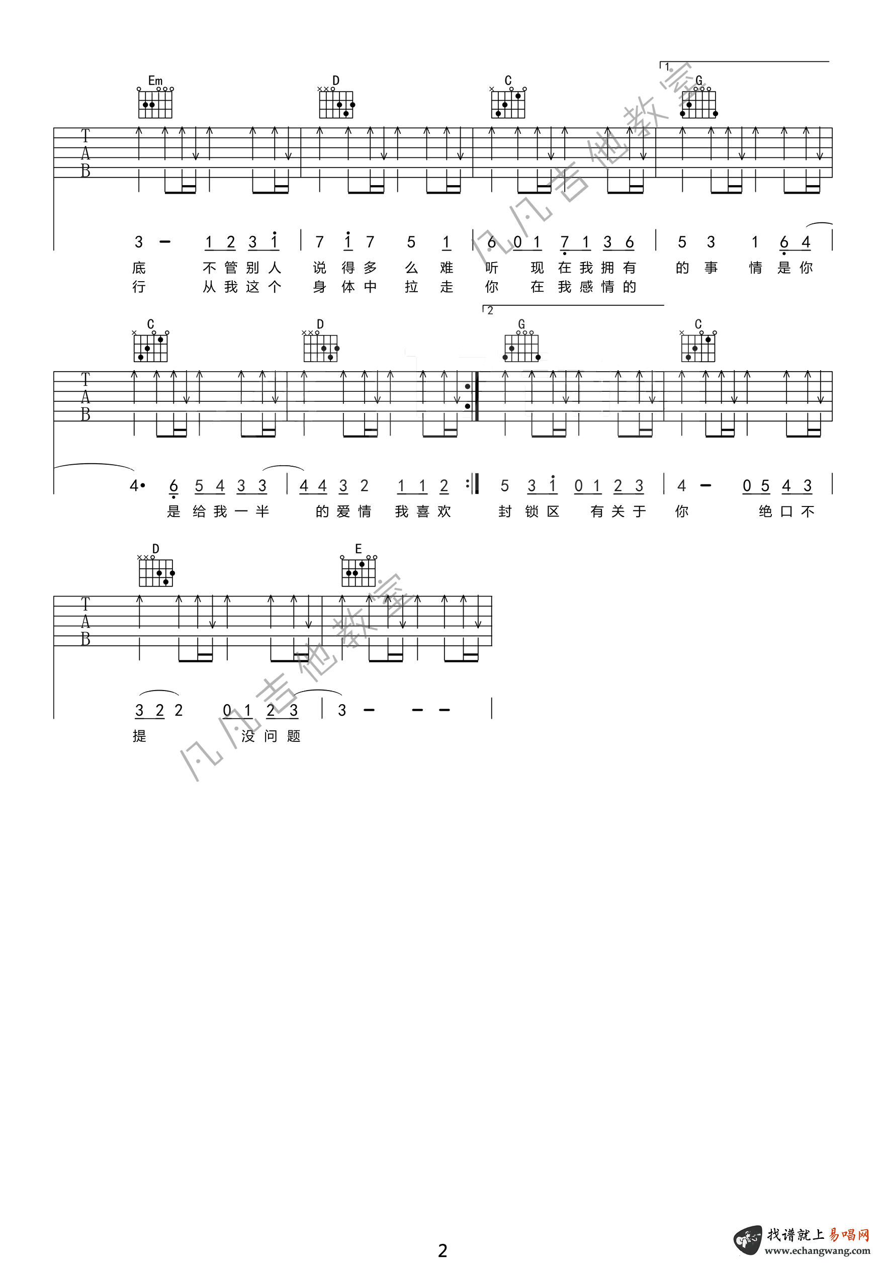 - 交换余生吉他谱_林俊杰_C调完整版_弹唱六线谱
