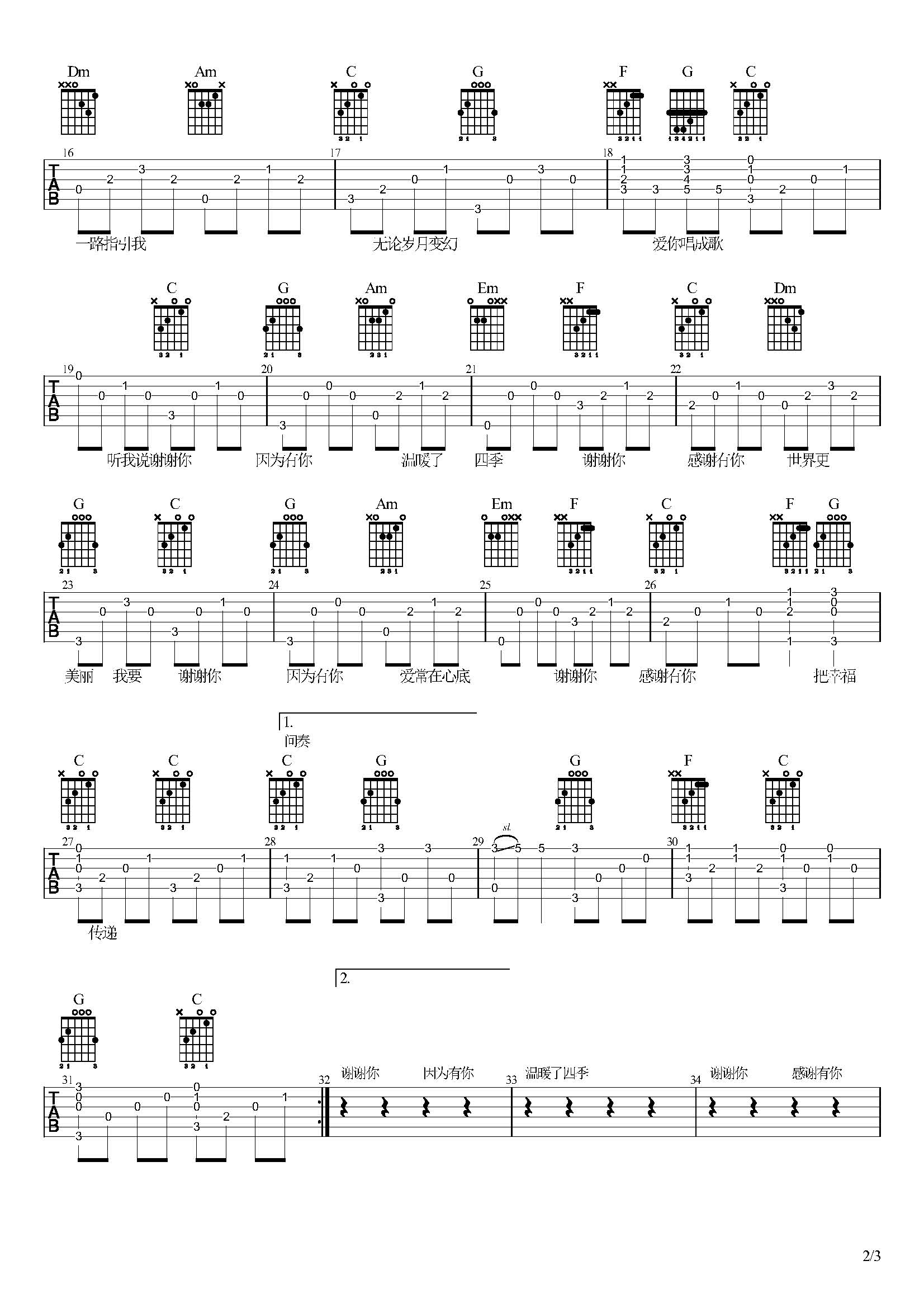 - 听我说谢谢你吉他谱_李昕融_C调弹唱谱