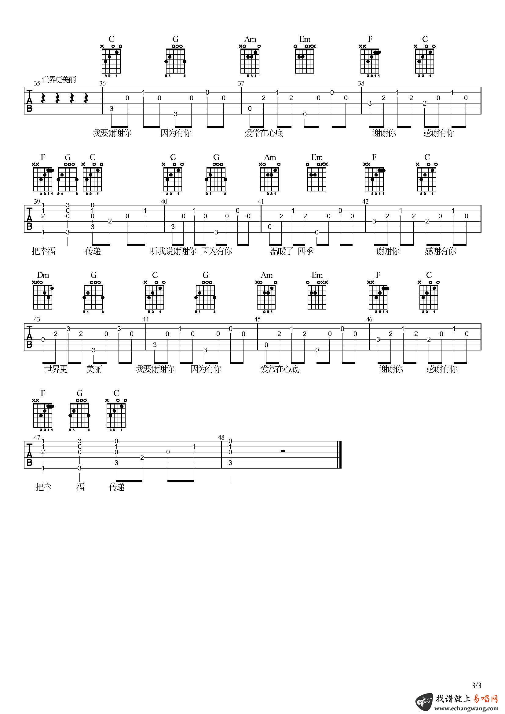 - 交换余生吉他谱_林俊杰_C调完整版_弹唱六线谱
