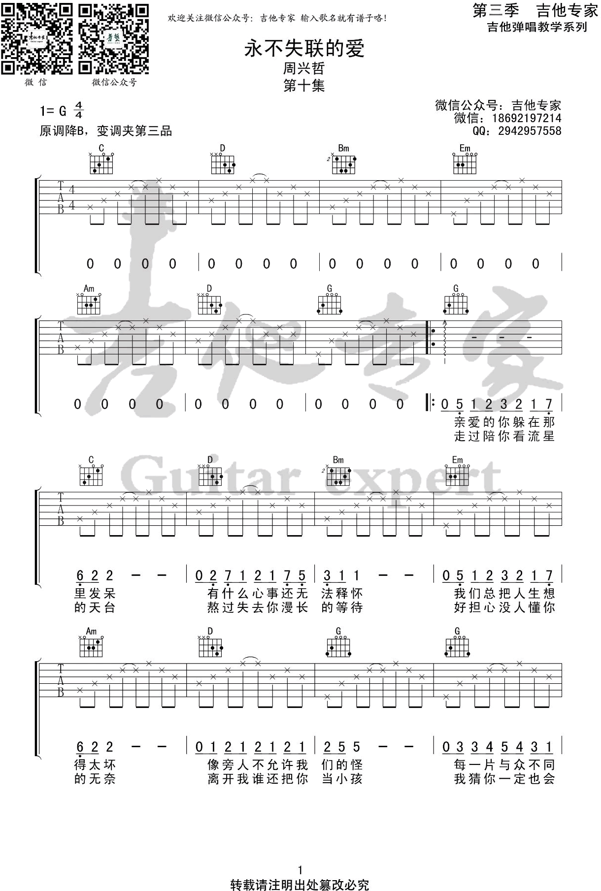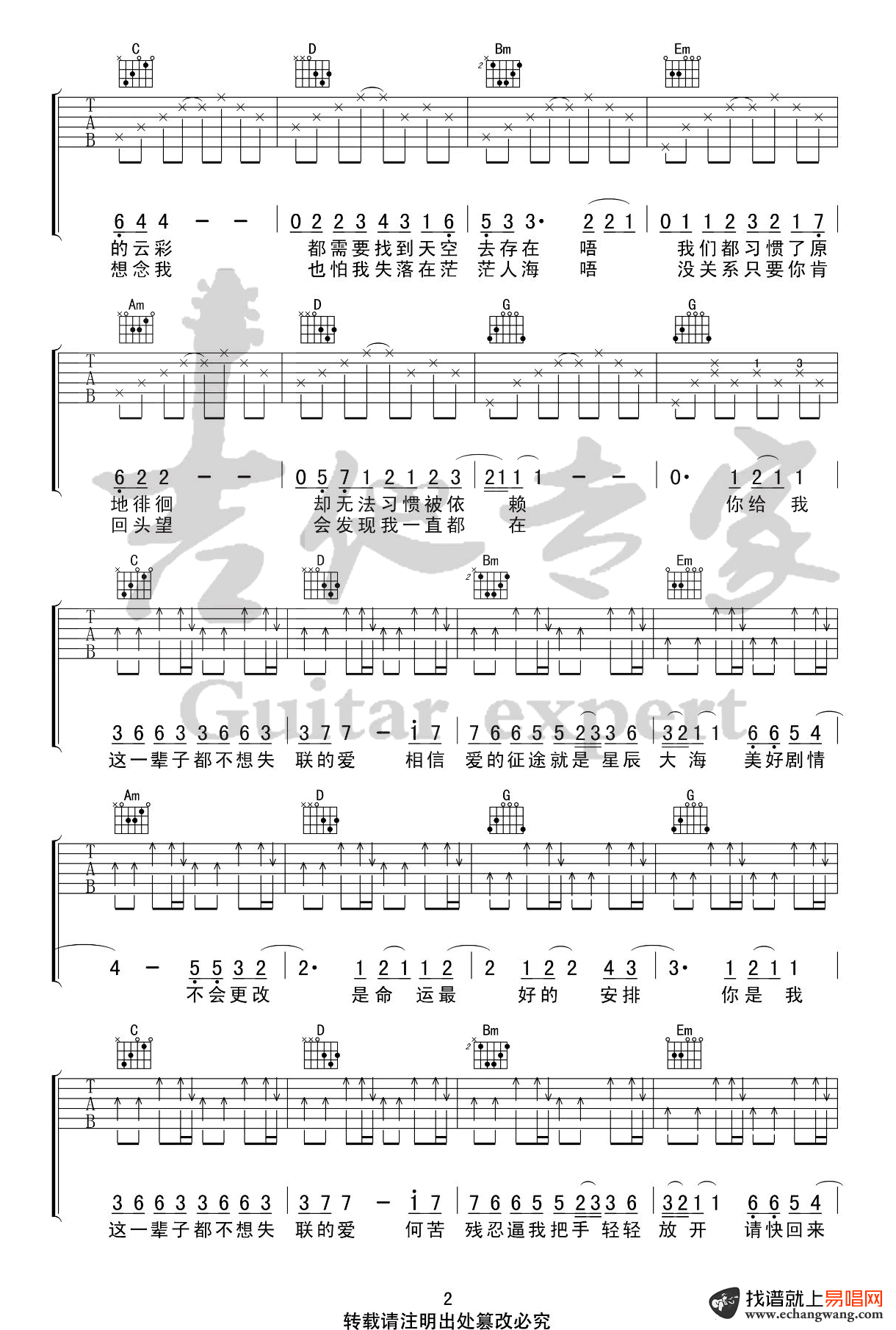 - 交换余生吉他谱_林俊杰_C调完整版_弹唱六线谱
