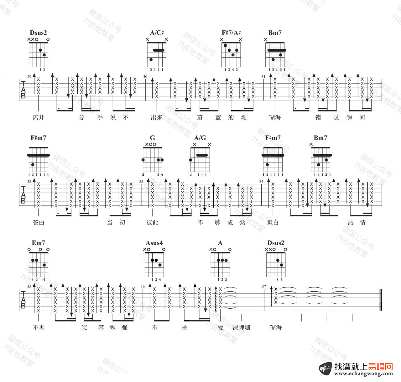 - 珊瑚海吉他谱_周杰伦_D调弹唱谱_经典男女对唱情歌
