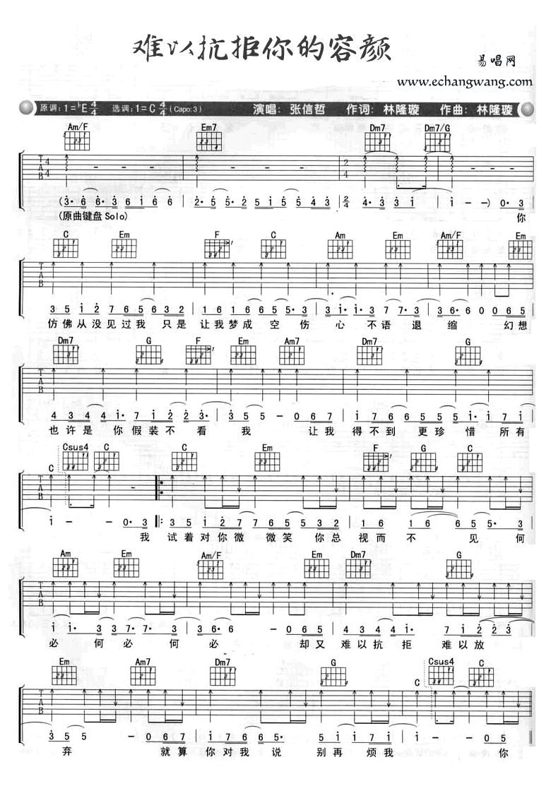 - 苏琛《欢》吉他谱_C调原版_弹唱六线谱