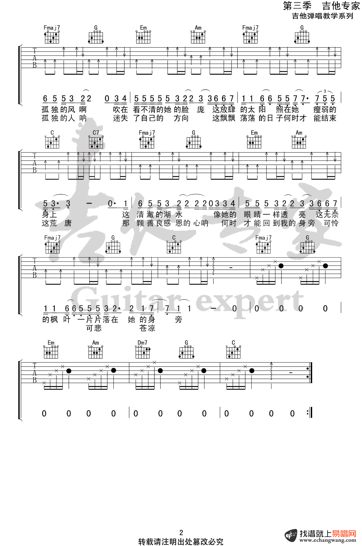 - 游京吉他谱_海伦_C调弹唱谱_《游京》六线谱