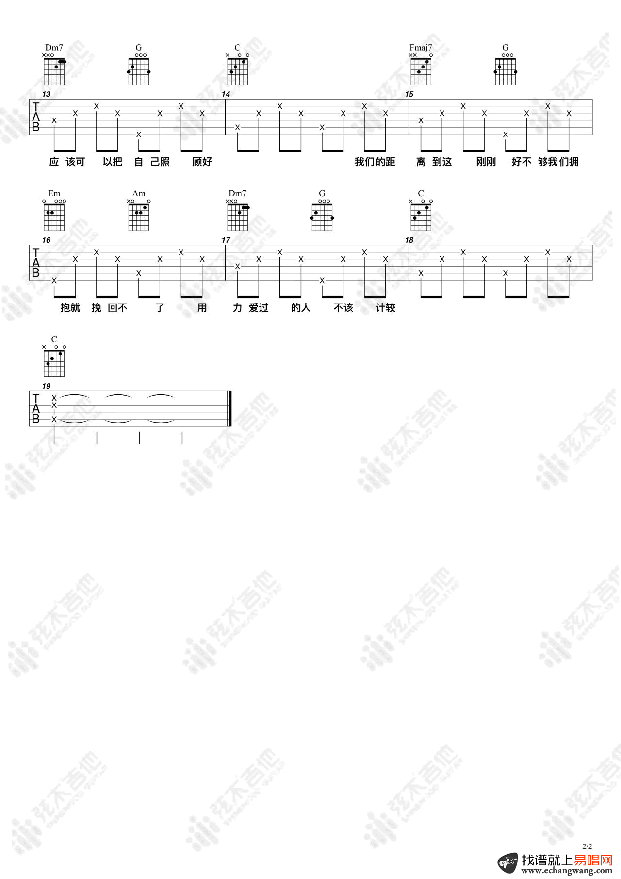 - 薛之谦《不爱我》吉他谱_G调_弹唱六线谱