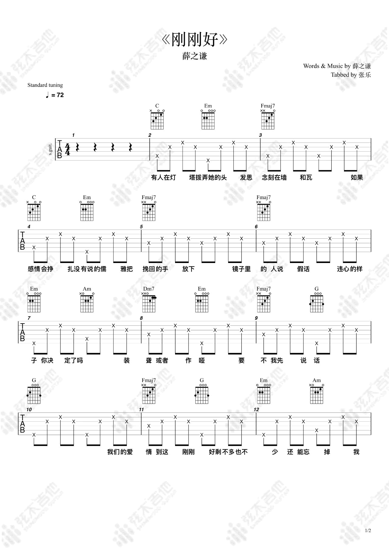 - 刚刚好吉他谱_薛之谦_C调弹唱谱_图片谱
