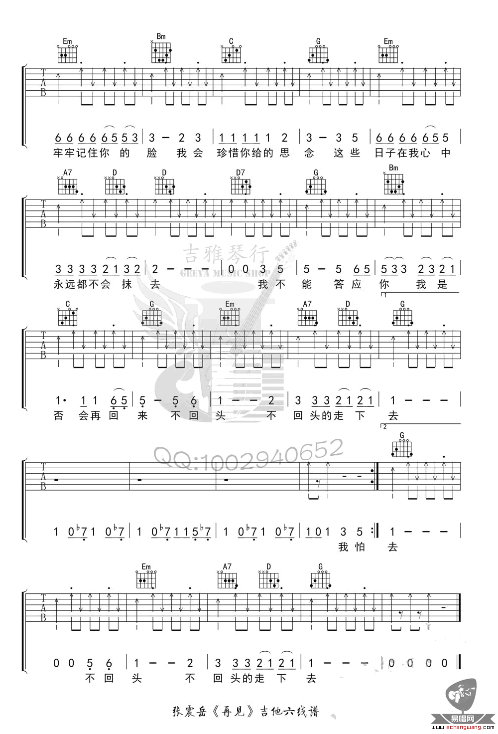 - 张震岳《再见》吉他谱 吉他扫弦版本 G调弹唱谱