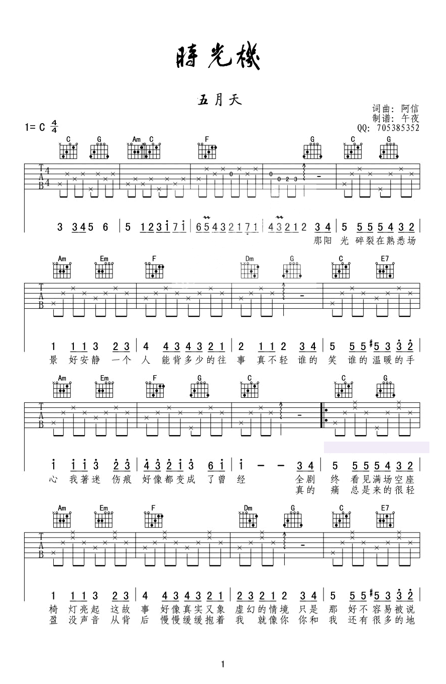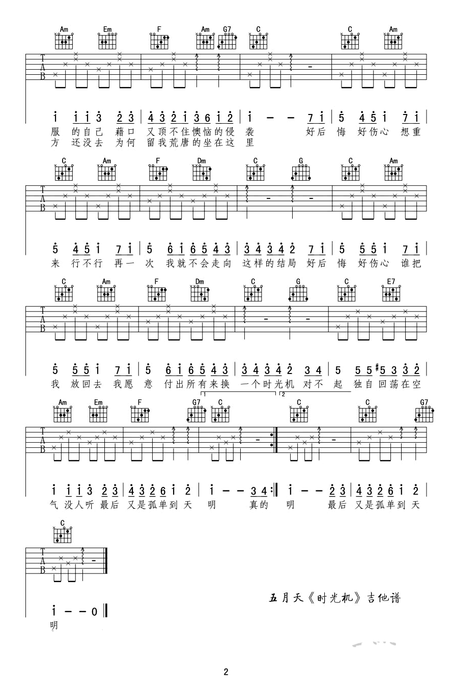 - 五月天《时光机》吉他谱_G调指法_高清图片谱