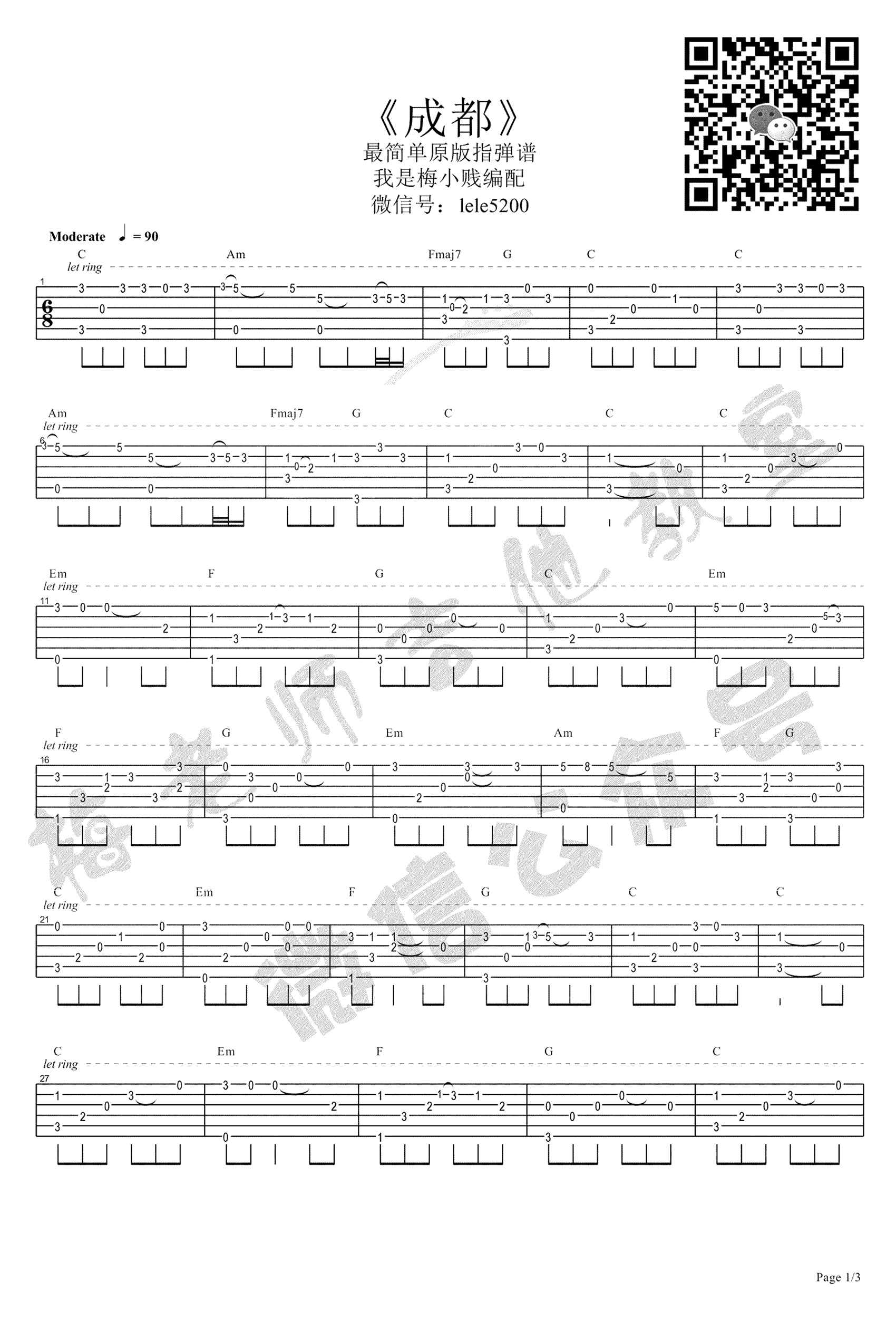 - 成都指弹谱 赵雷《成都》吉他独奏谱 高清图片谱