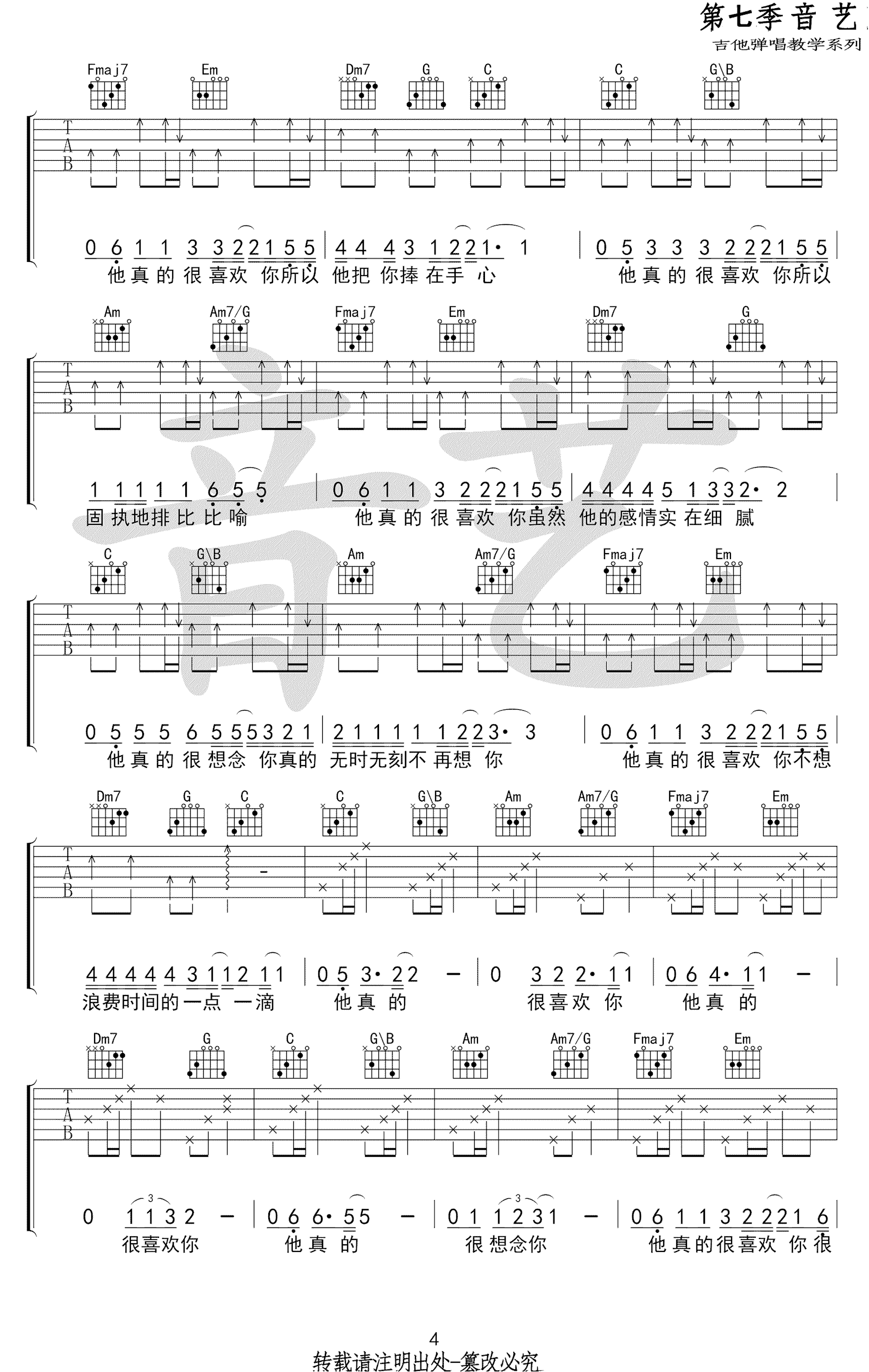 - 给你吉他谱 茶季杨《给你》六线谱 G调弹唱谱 吉他教学视频