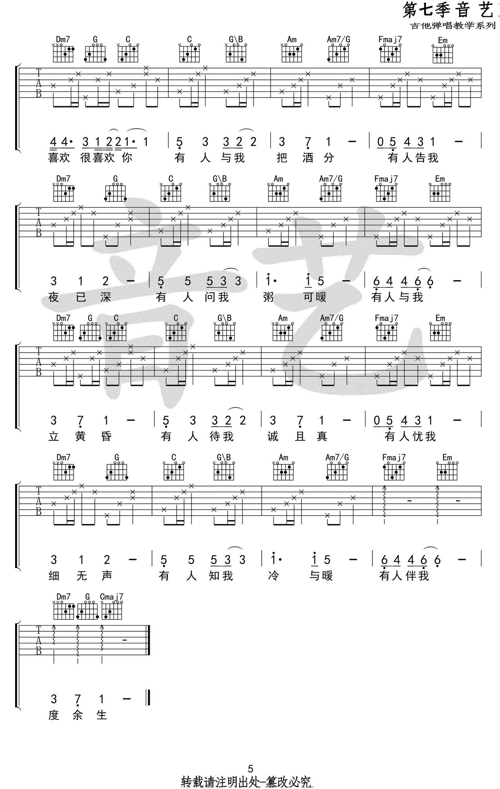 - 七月上吉他谱 G调弹唱谱 JAM阿敬《七月上》六线谱