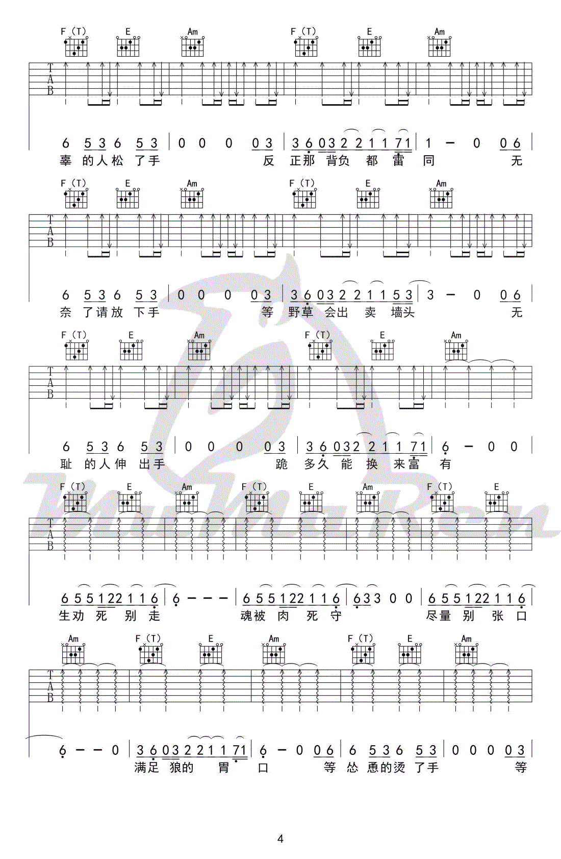 - 动物世界吉他谱 C调简单版 薛之谦 弹唱六线谱