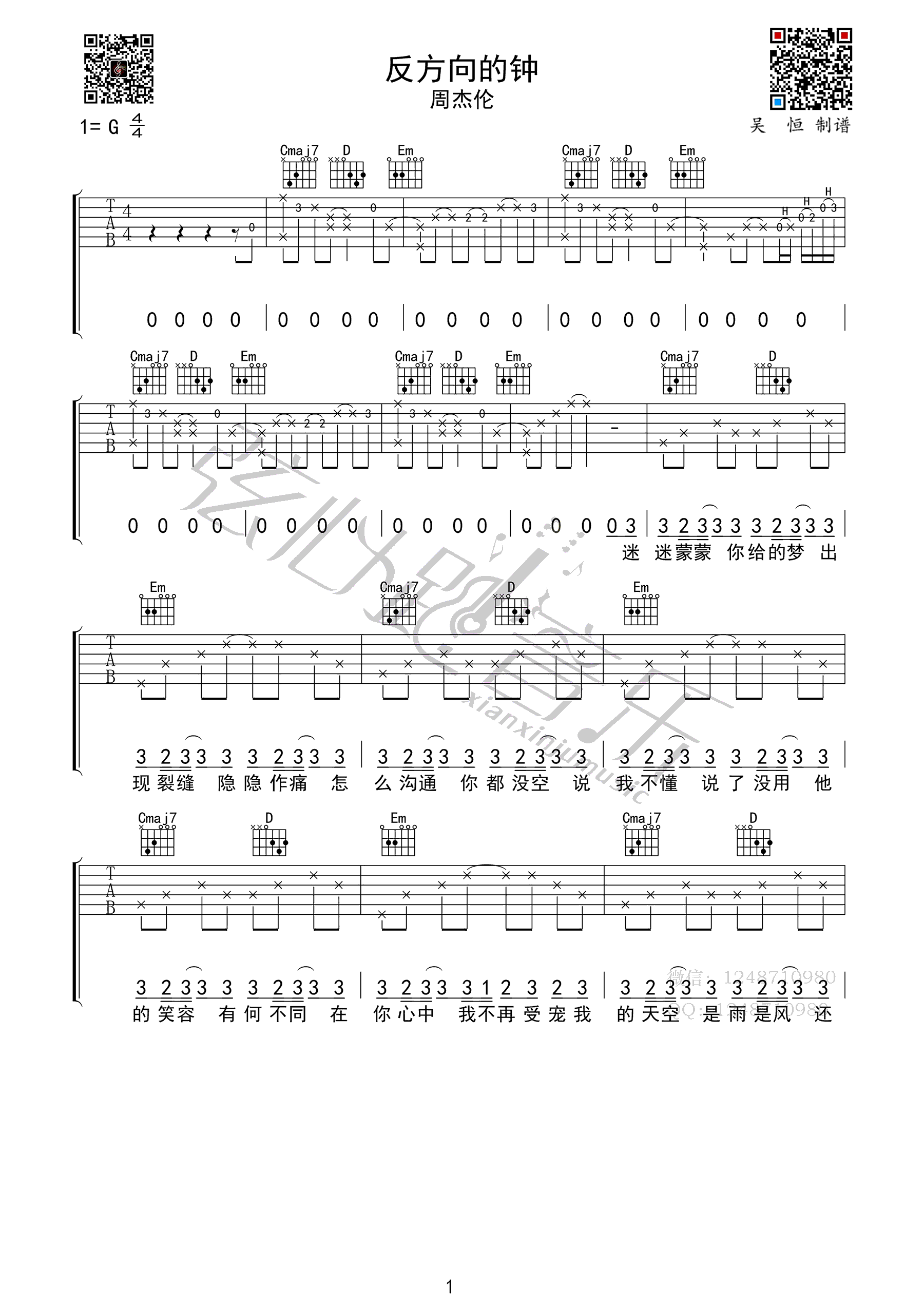 - 薛之谦《背过手》吉他谱 C调弹唱谱 高清图片谱