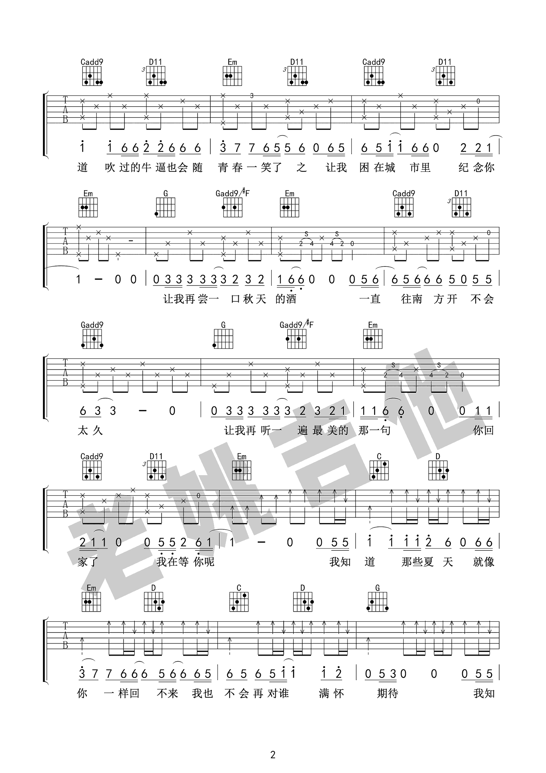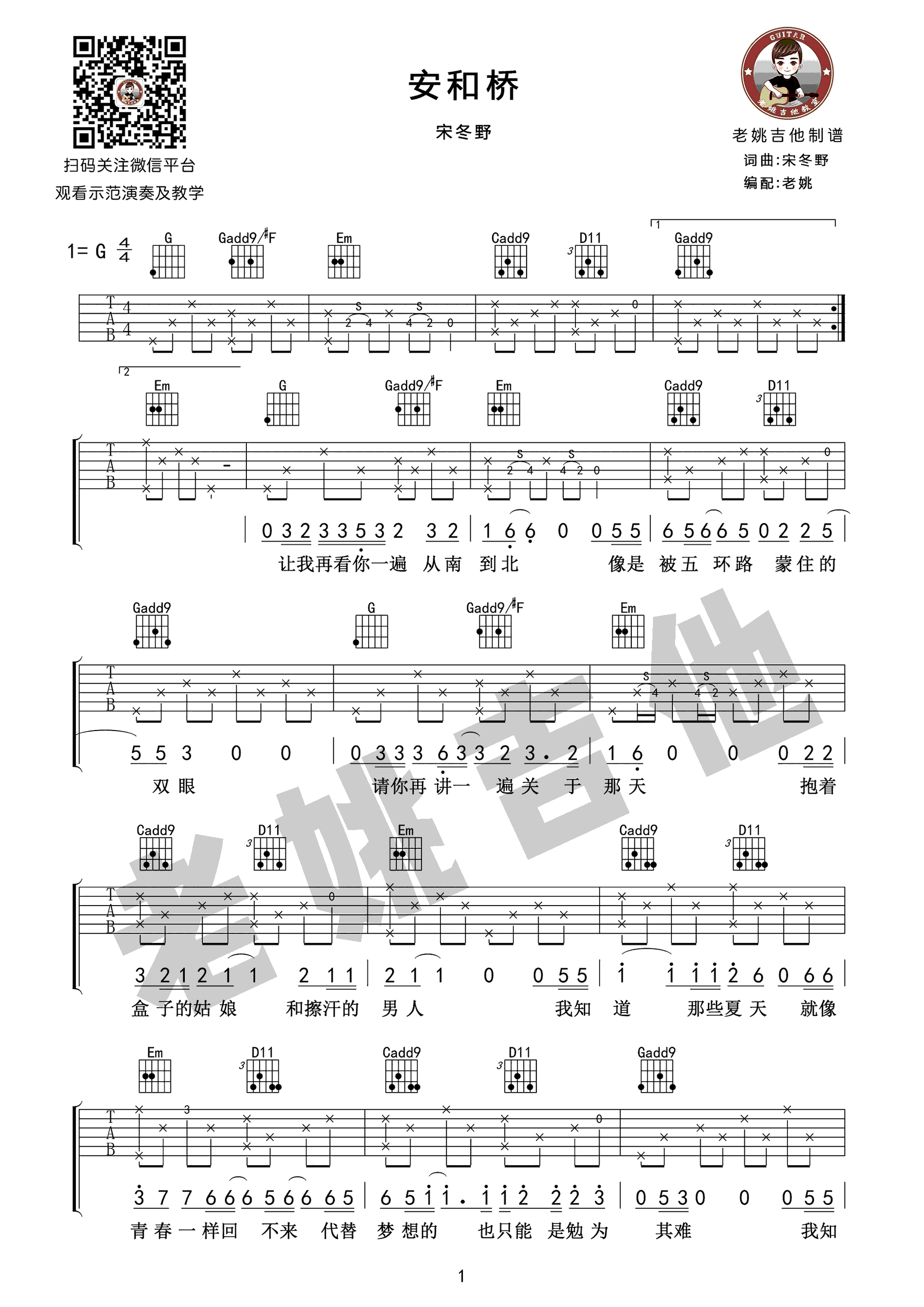 - 宋冬野《安和桥》吉他谱 G调高清版 六线谱