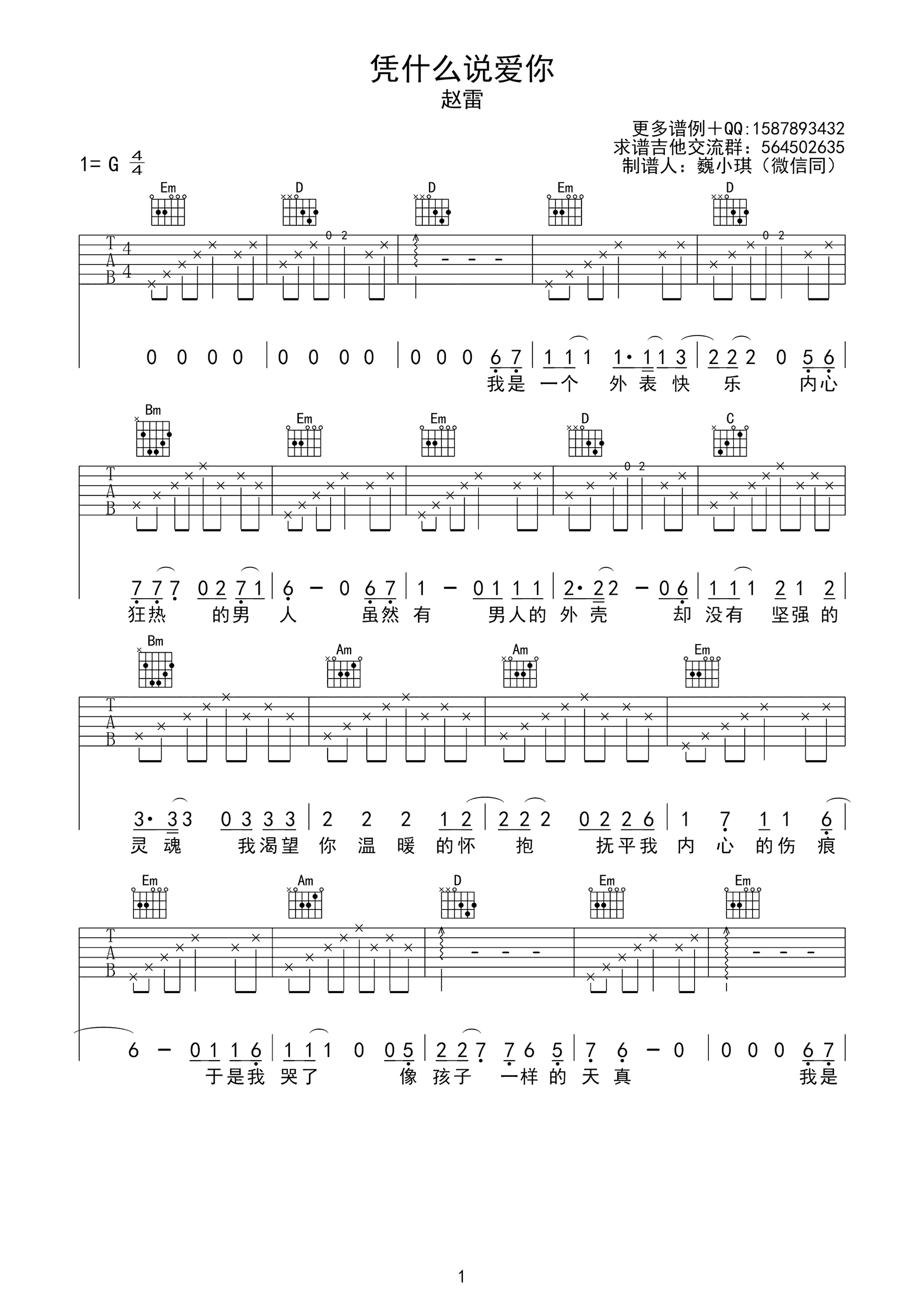 - 凭什么说爱你吉他谱 赵雷 G调六线谱 吉他弹唱视频