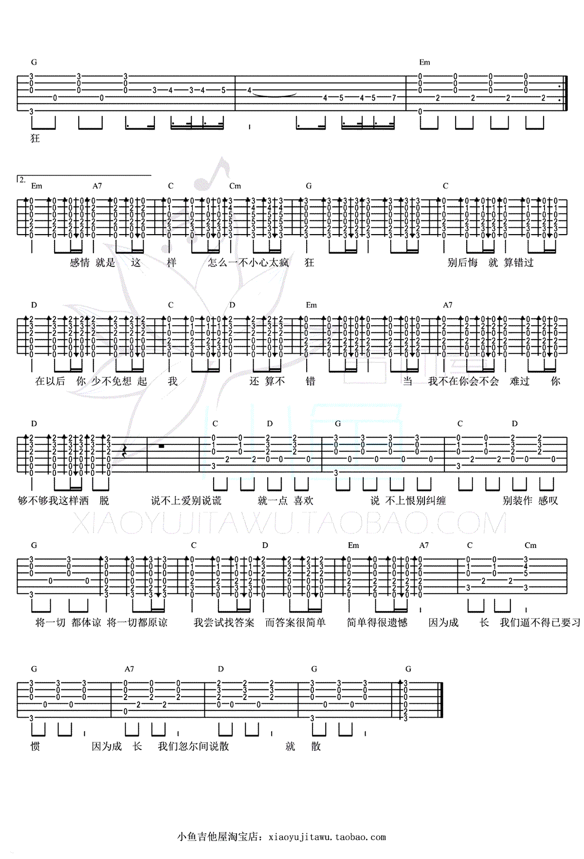 - 最美情侣吉他谱 白小白 G调弹唱谱 高清六线谱