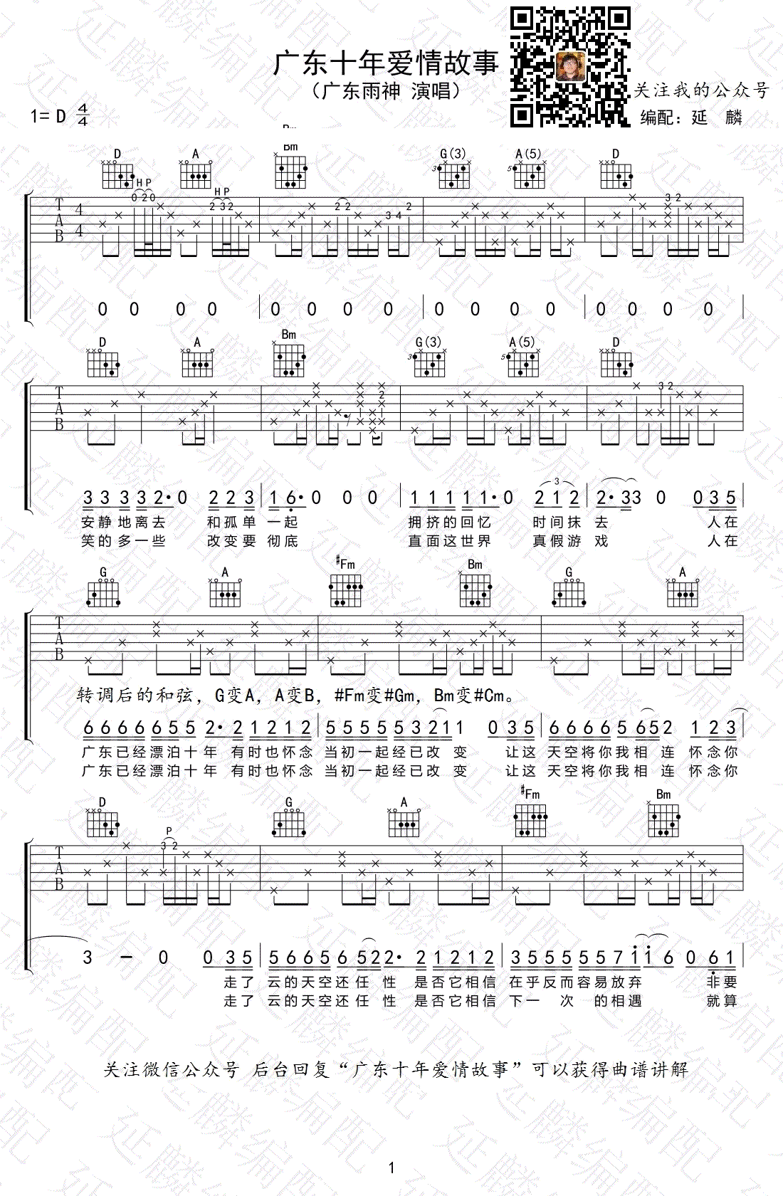 - 广东爱情故事吉他谱 广东雨神 D调弹唱谱 图片谱高清版