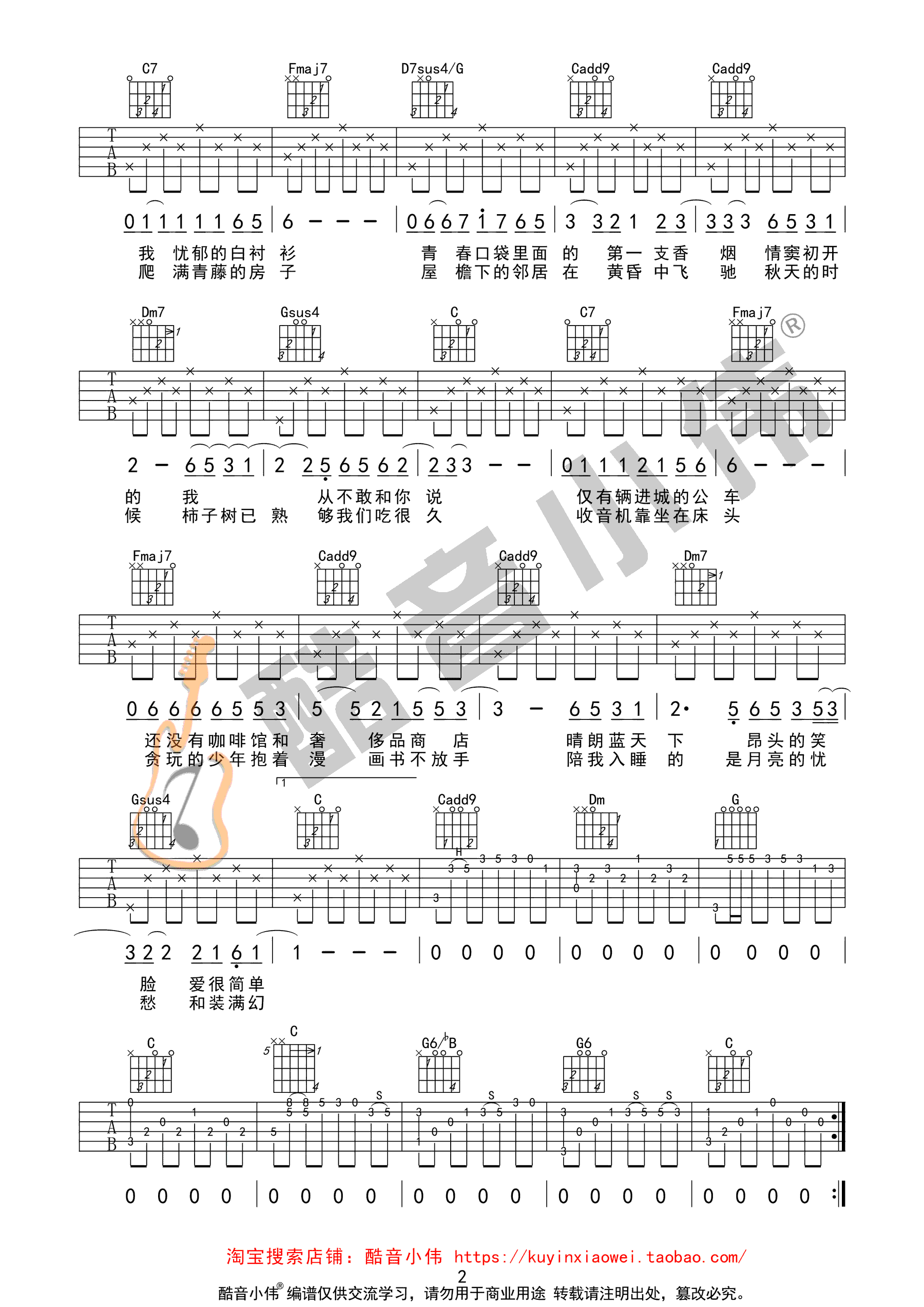 - 成都吉他谱 赵雷 现场版 高清弹唱谱
