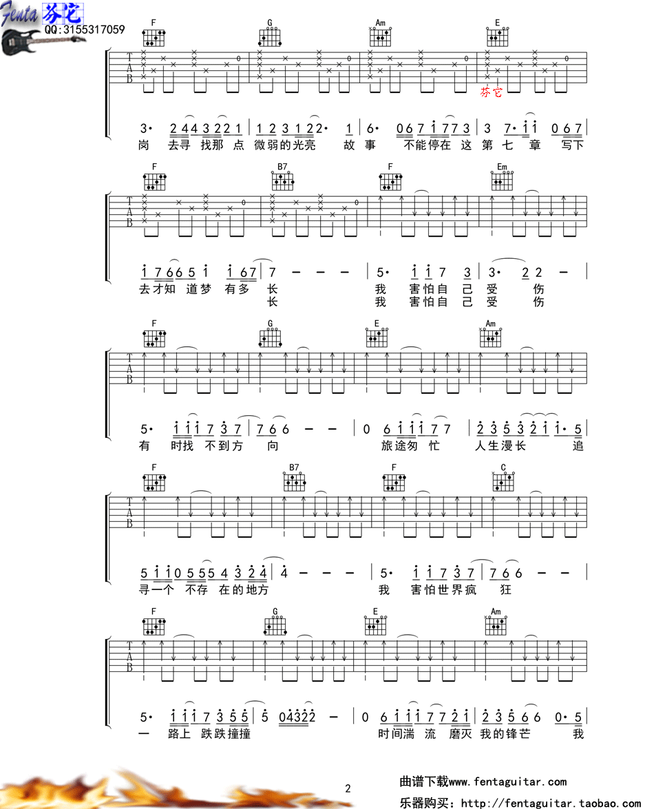 - 萤火吉他谱 TFBoys 萤火C调弹唱谱 高清六线谱