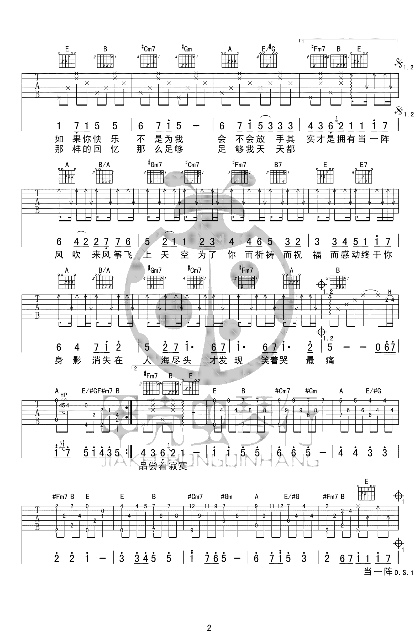 - 五月天《如烟》吉他谱 A调六线谱 弹唱谱完整版