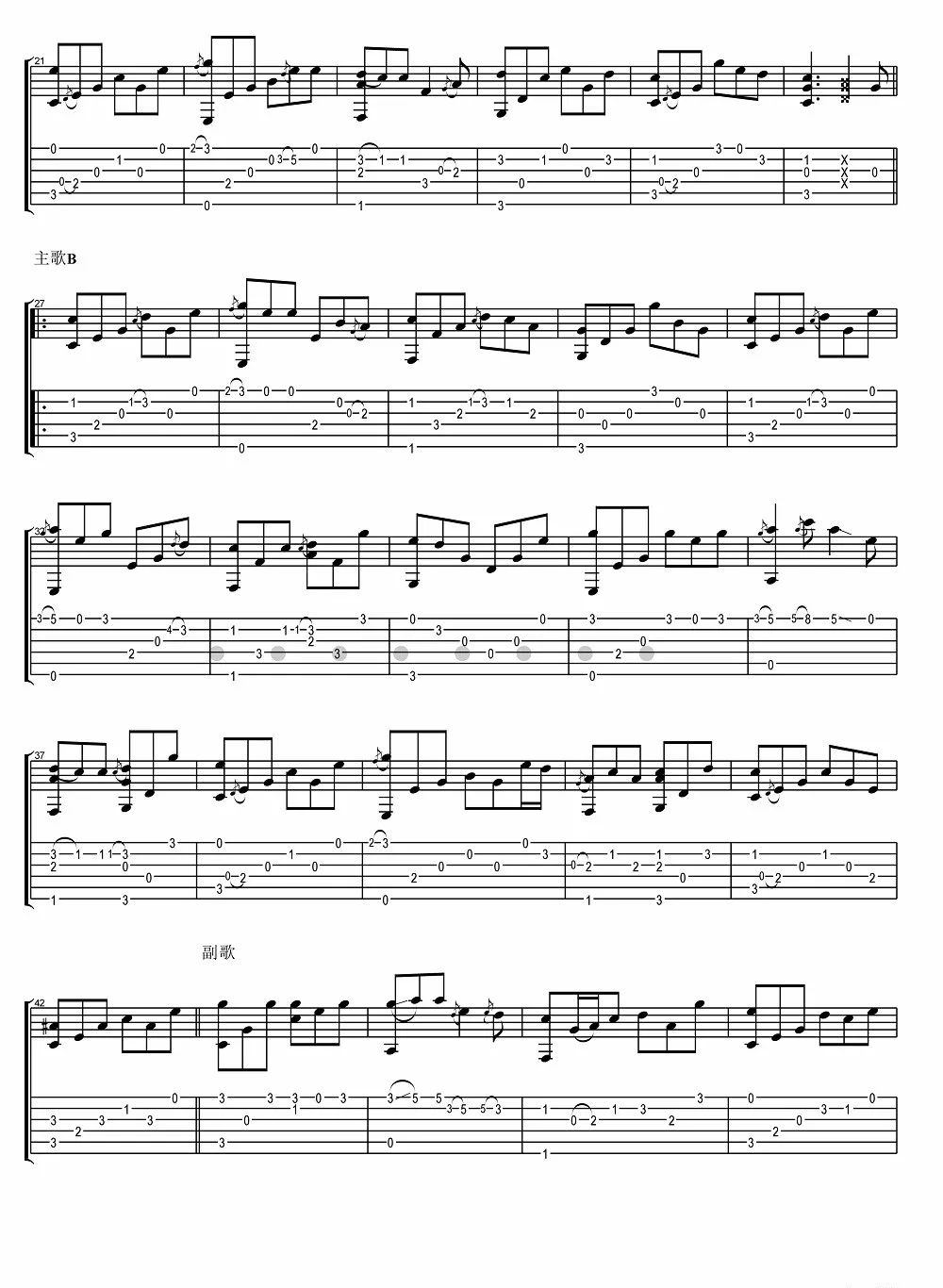 - 成都指弹谱 赵雷《成都》吉他独奏谱 指弹吉他视频演示