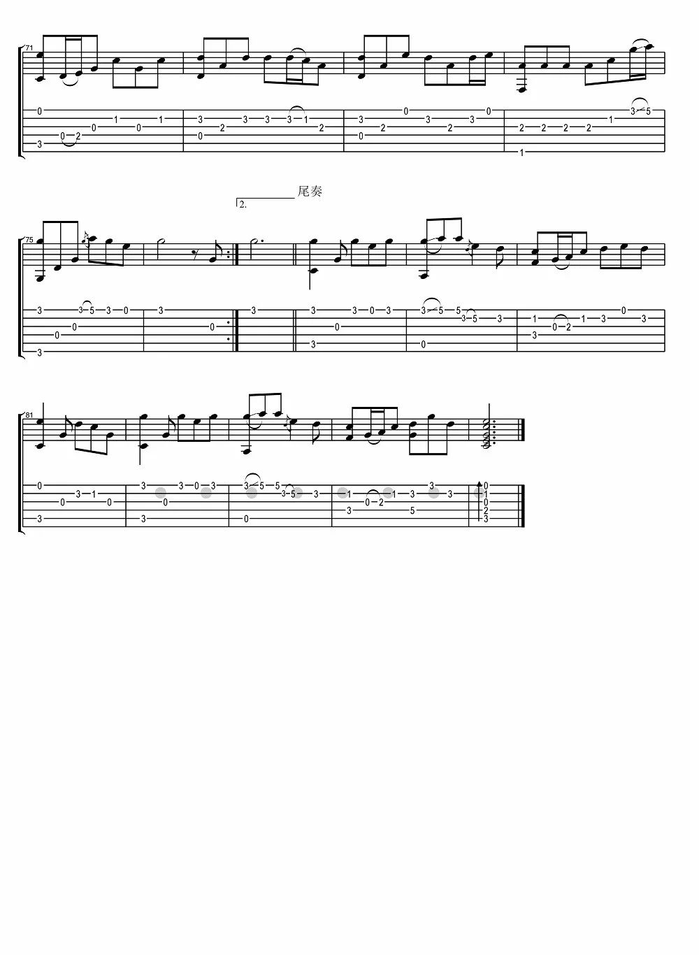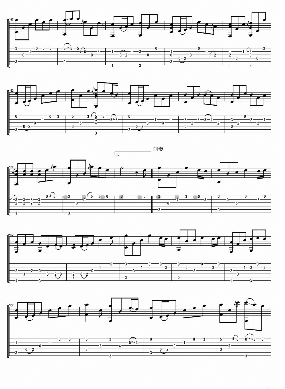 - 但愿人长久指弹吉他谱 王菲 吉他独奏谱 高清图片谱