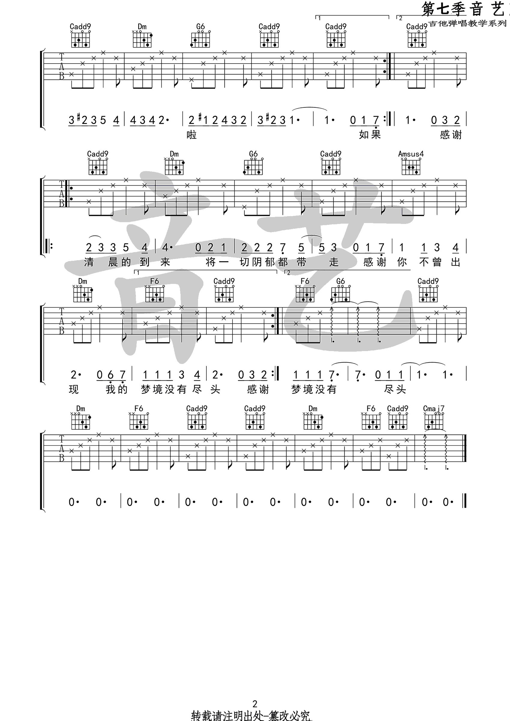 - 给你吉他谱 茶季杨《给你》六线谱 G调弹唱谱 吉他教学视频
