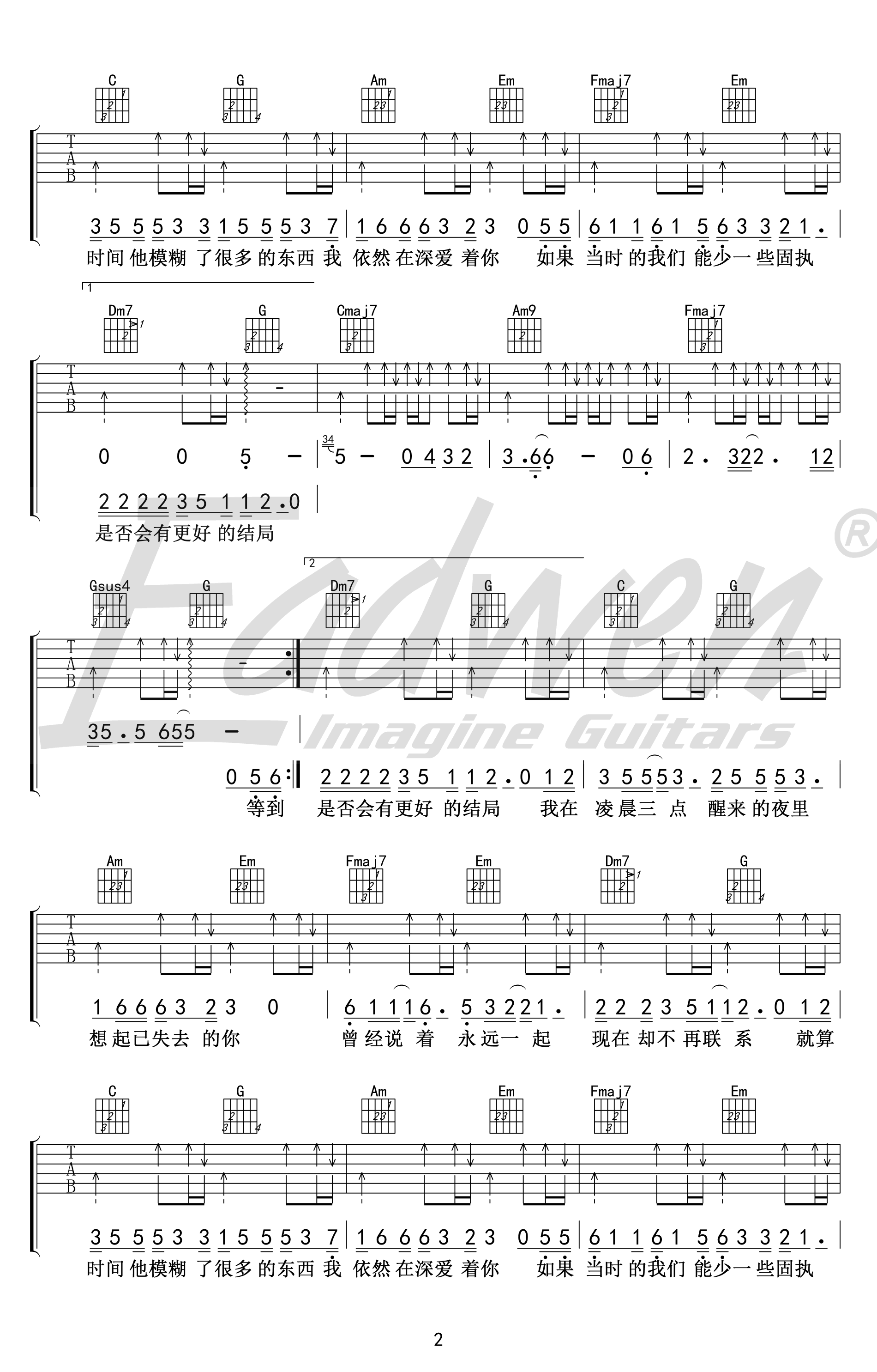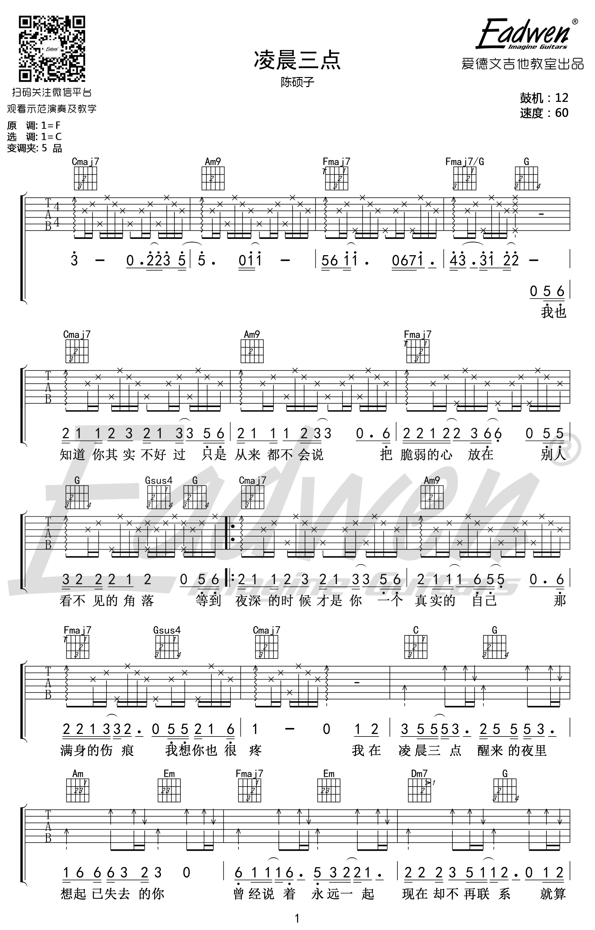 - 凌晨三点吉他谱 陈硕子 C调弹唱谱完整版 图片谱