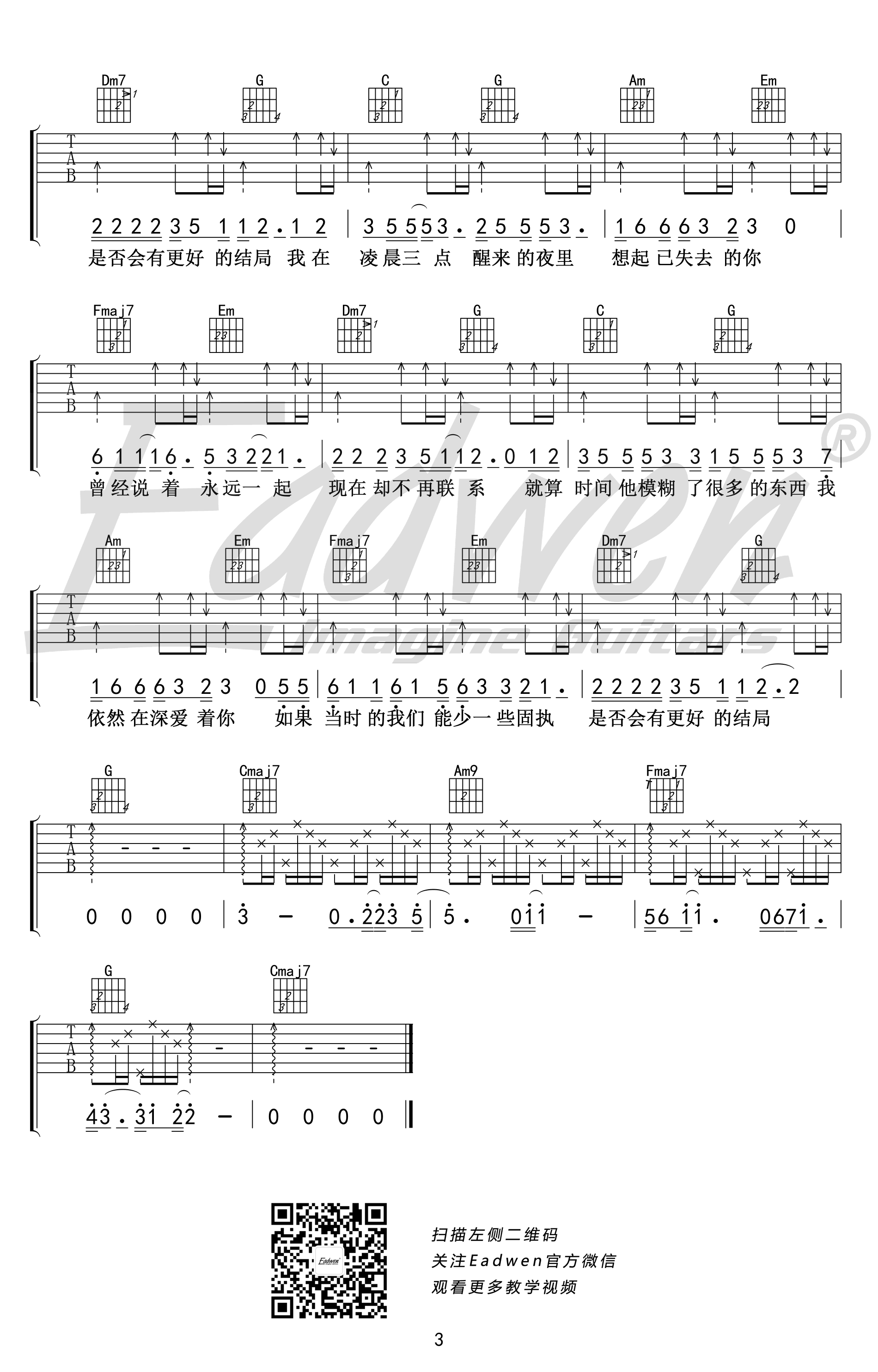 - 凌晨三点吉他谱 G调原版 陈硕子《凌晨三点》吉他教学视频