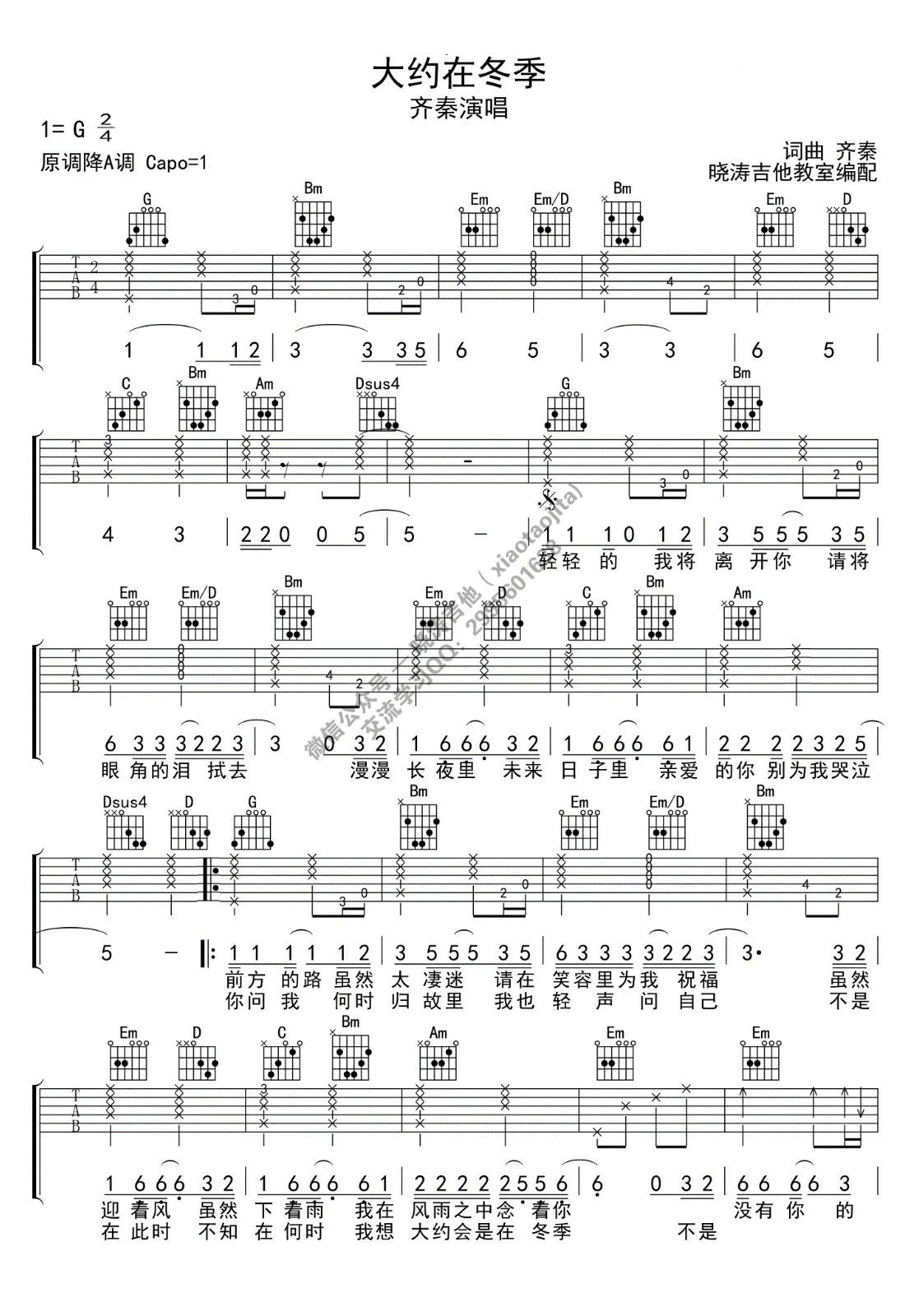 - 齐秦《往事随风》吉他谱 G调弹唱谱 图片高清版